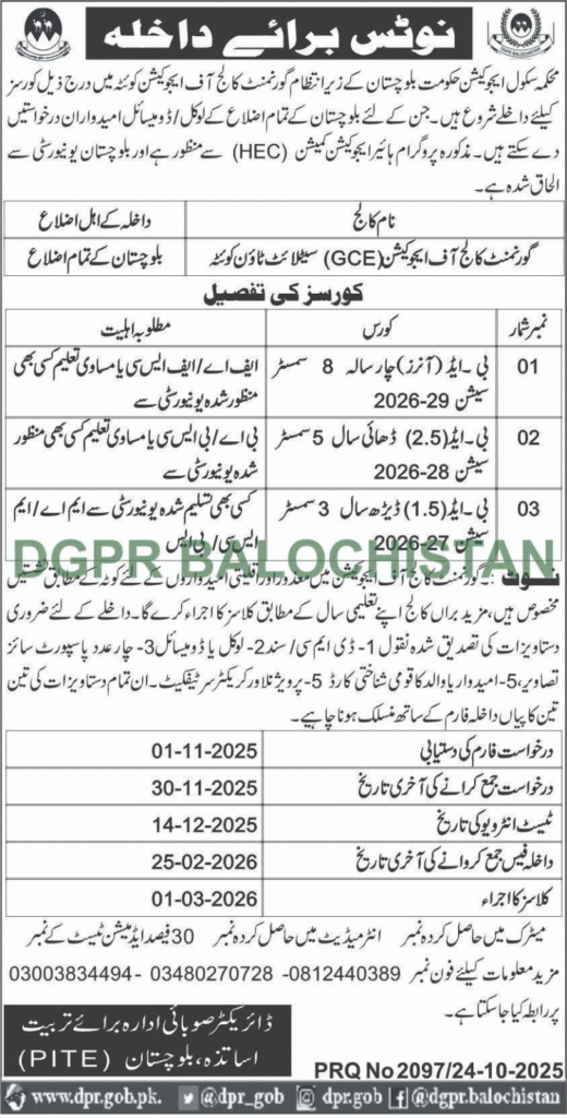 Pishin: Walk-in Interview Schedule Announced for Various Posts