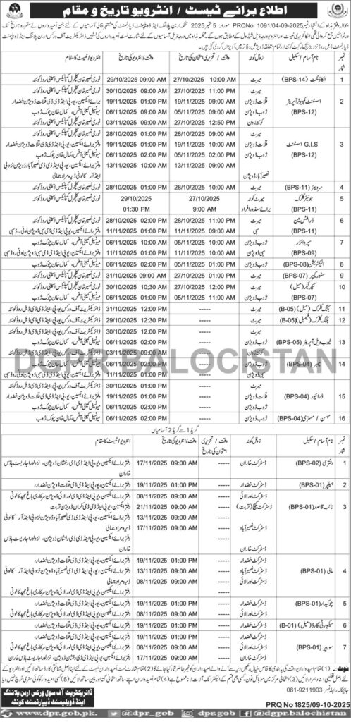 Announcement Test & Interview Schedule – Urban and Development Department, Balochistan