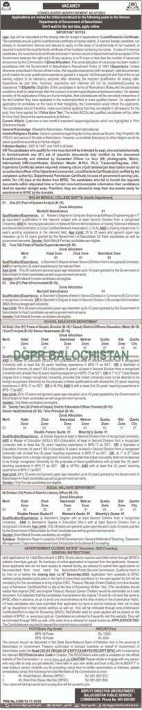 Applications Invited: District-Level Vacancies (BPS-16 to BPS-18) Through Balochistan Public Service Commission