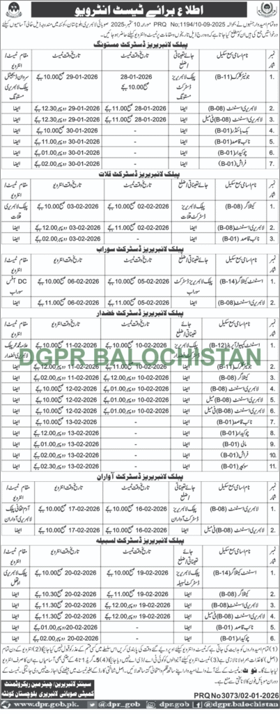 Adv-JobsApplications Invited for Recruitment to Vacant Positions in Sub-District Offices at the Provincial Library, Balochistan (Quetta)January 3, 2026January 3, 2026Comments (0)Shams Ur Rehman Anas Hussain