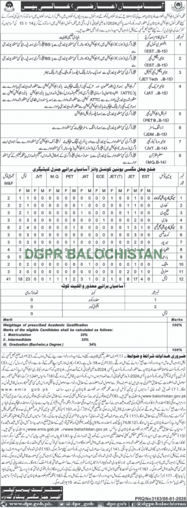 “Applications Invited for Temporary Vacancies in Jhal Magsi District under the 2024 Policy by the School Education Department, Balochistan”