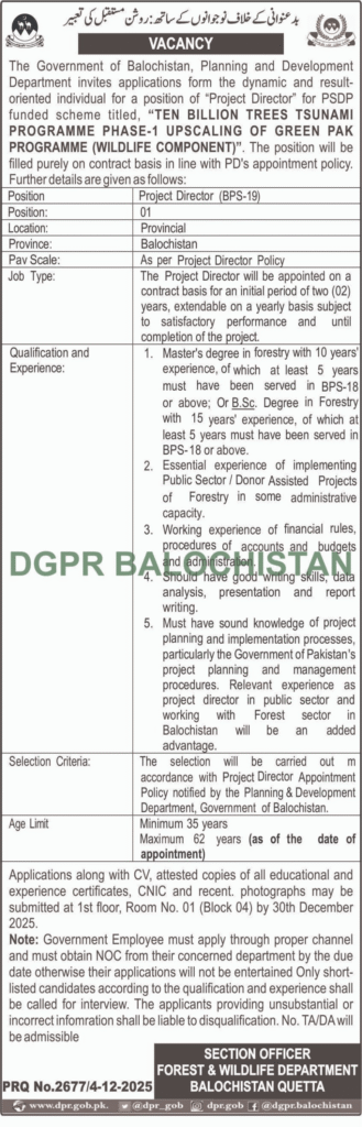 Adv-JobsApplications Invited for the Position of Project Director (PSDP) – Planning & Development Department BalochistanDecember 4, 2025December 4, 2025Comments (0)Shams Ur Rehman Anas Hussain
