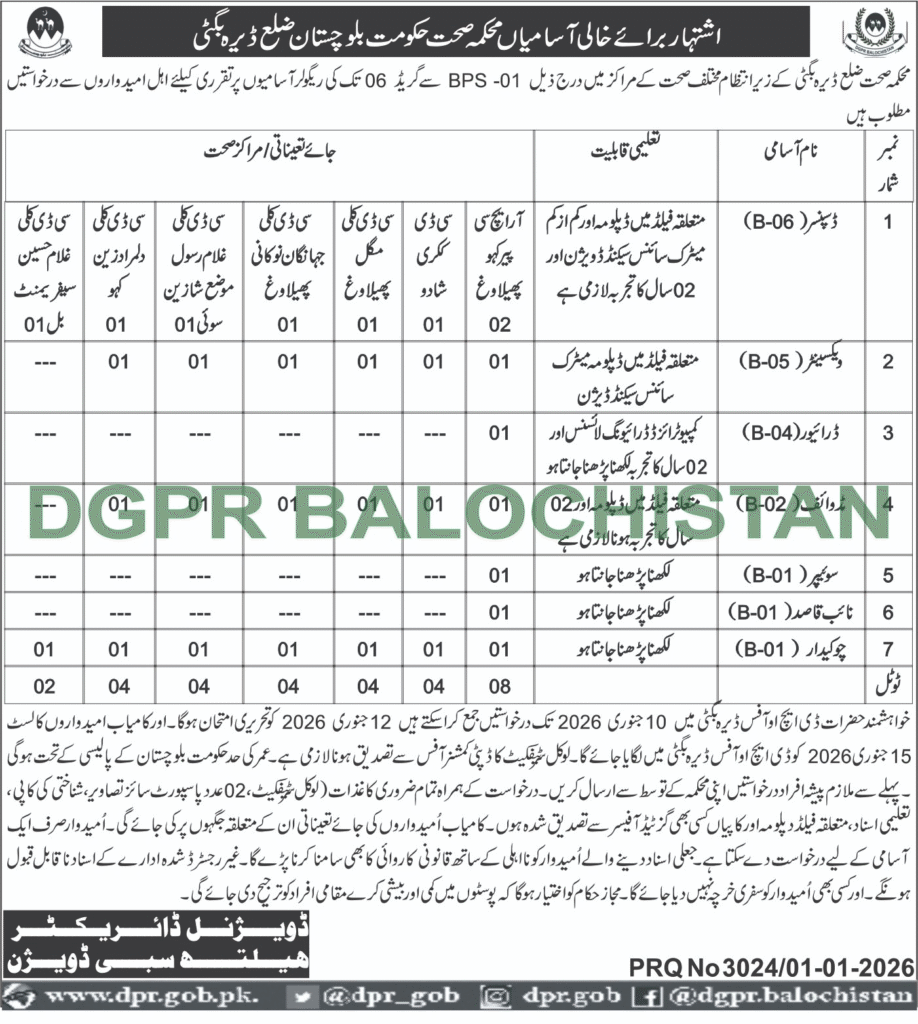 Adv-JobsApplications Invited for Various Positions at Dera Bugti District Health DepartmentJanuary 1, 2026January 1, 2026Comments (0)Shams Ur Rehman Anas Hussain