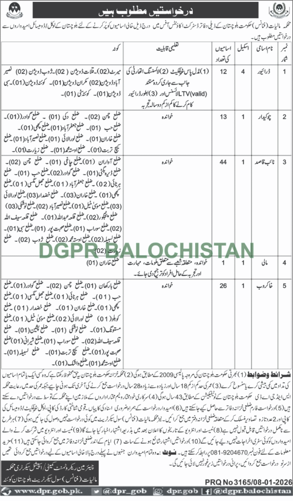 “Applications Invited for Various Vacancies in Sub-Offices of the District Accounts Office, Finance Department, Government of Balochistan”