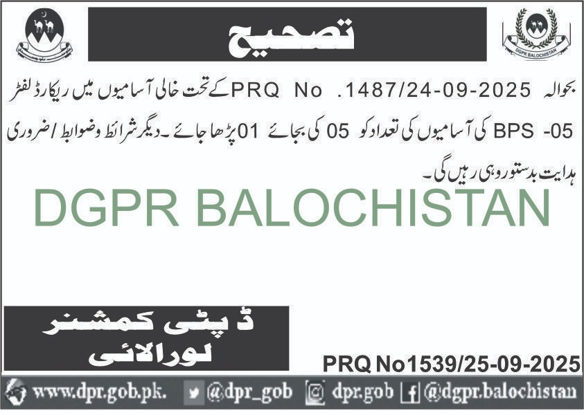 Correction of Vacancies – Deputy Commissioner Office Loralai