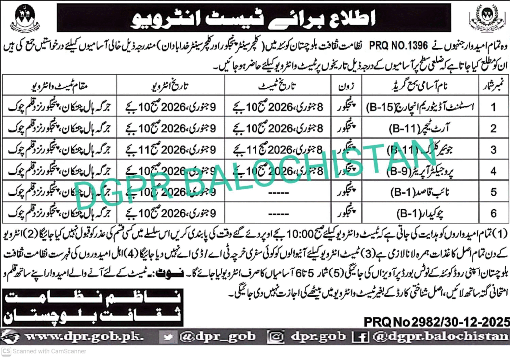 Adv-JobsDepartment of Culture, Balochistan – Notification for Test and InterviewDecember 31, 2025December 31, 2025Comments (0)Shams Ur Rehman Anas Hussain