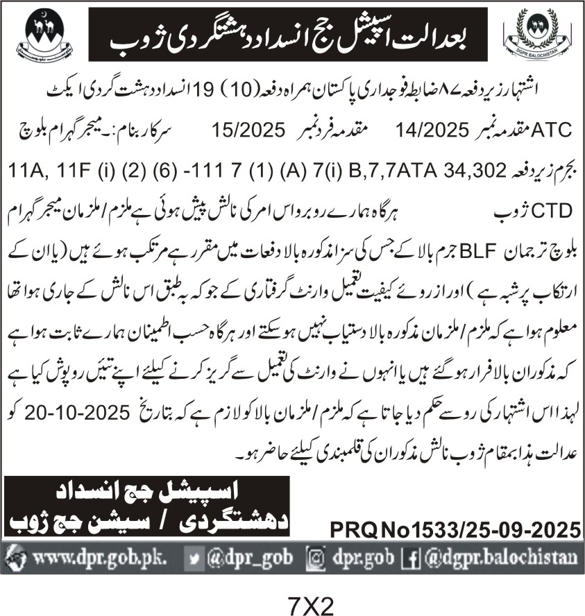 Information Department of West Pakistan Government was working before 1971. After the creation of province of Balochistan,the Information Wing with its attached Directorate i.e. Directorate of Public Relations was established. This Information Wing remained combined/integrated with various departments like Home,S&GAD,Culture/Tourism and I.T,finally it was bifurcated from I.T Department in 2008,since then it is functioning as a fully-fledged department independently.