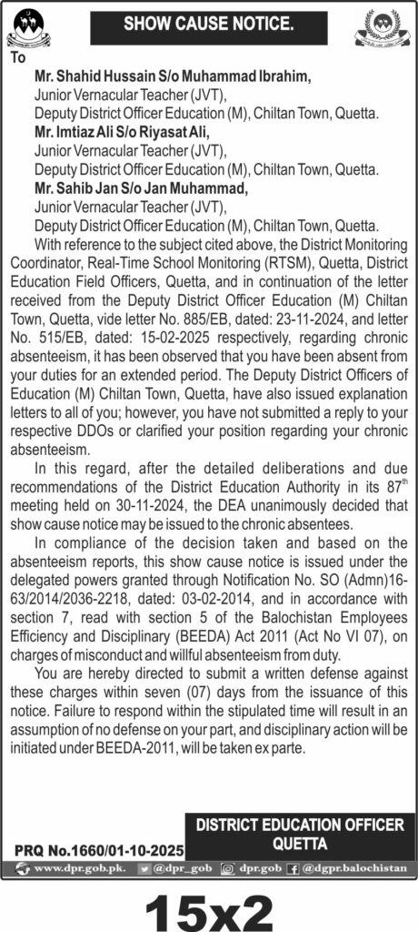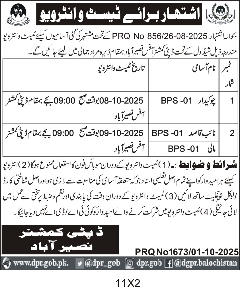 Notice for Test & Interview – Commissioner Sibi Division (Chairman