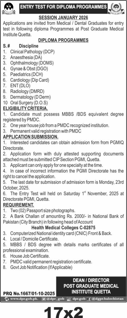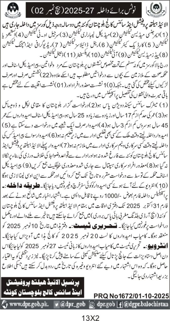 Interview Notice – New Trauma Center, Sandeman Provincial Hospital Quetta