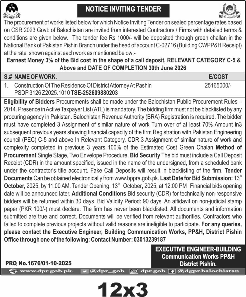 Job Opportunity at Communication & Works Department, Government of Balochistan