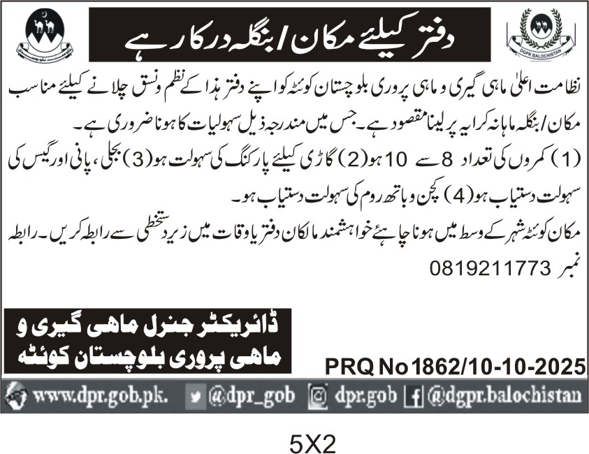 Information Department of West Pakistan Government was working before 1971. After the creation of province of Balochistan,the Information Wing with its attached Directorate i.e. Directorate of Public Relations was established. This Information Wing remained combined/integrated with various departments like Home,S&GAD,Culture/Tourism and I.T,finally it was bifurcated from I.T Department in 2008,since then it is functioning as a fully-fledged department independently.