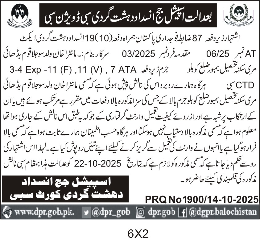 Information Department of West Pakistan Government was working before 1971. After the creation of province of Balochistan,the Information Wing with its attached Directorate i.e. Directorate of Public Relations was established. This Information Wing remained combined/integrated with various departments like Home,S&GAD,Culture/Tourism and I.T,finally it was bifurcated from I.T Department in 2008,since then it is functioning as a fully-fledged department independently.