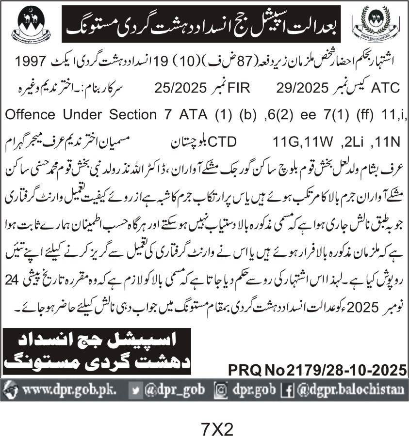 Information Department of West Pakistan Government was working before 1971. After the creation of province of Balochistan,the Information Wing with its attached Directorate i.e. Directorate of Public Relations was established. This Information Wing remained combined/integrated with various departments like Home,S&GAD,Culture/Tourism and I.T,finally it was bifurcated from I.T Department in 2008,since then it is functioning as a fully-fledged department independently.
