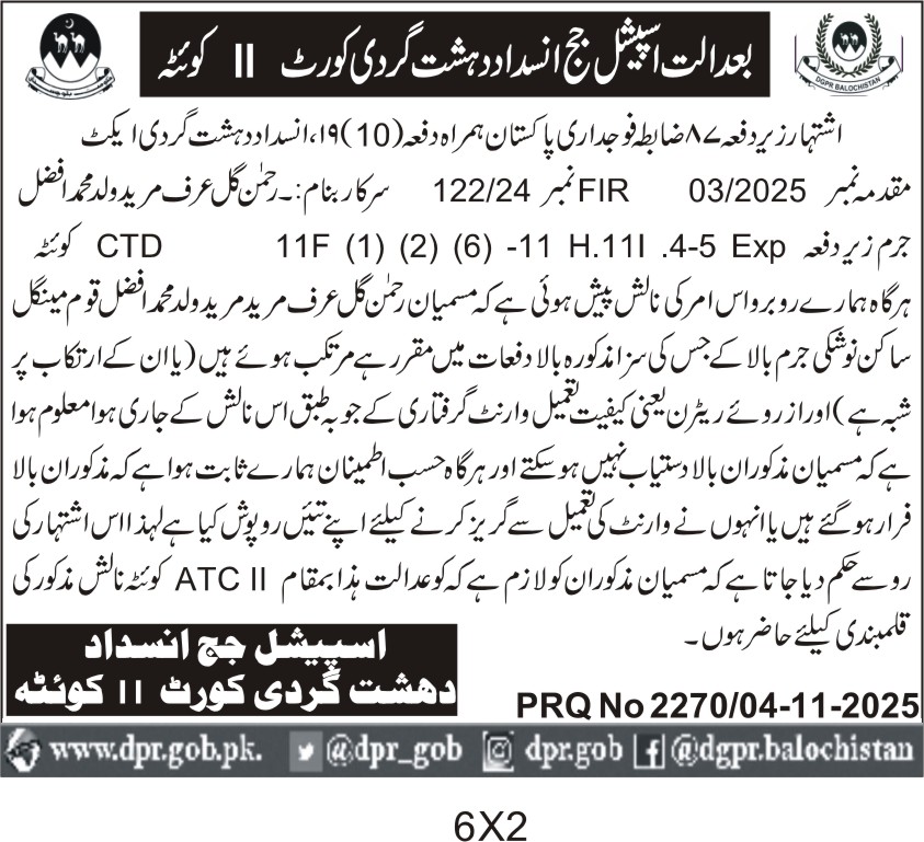 Information Department of West Pakistan Government was working before 1971. After the creation of province of Balochistan,the Information Wing with its attached Directorate i.e. Directorate of Public Relations was established. This Information Wing remained combined/integrated with various departments like Home,S&GAD,Culture/Tourism and I.T,finally it was bifurcated from I.T Department in 2008,since then it is functioning as a fully-fledged department independently.