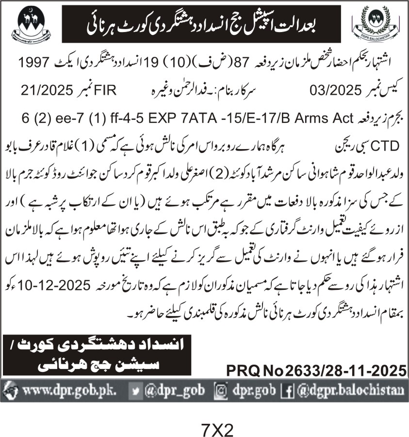 All the day's headlines and highlights from The Directorate of General Public Relations Balochistan, direct to you every morning.