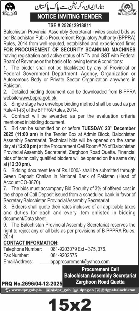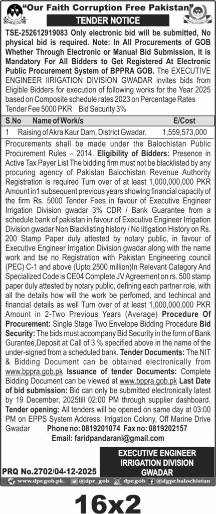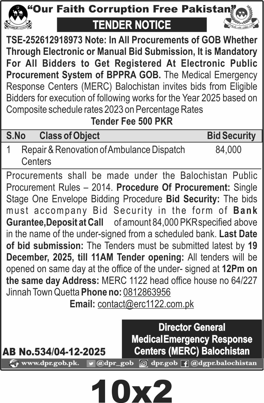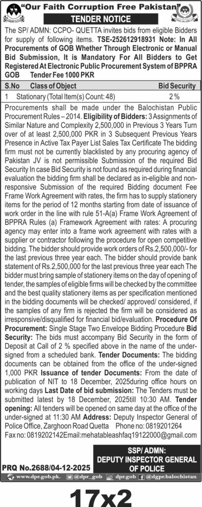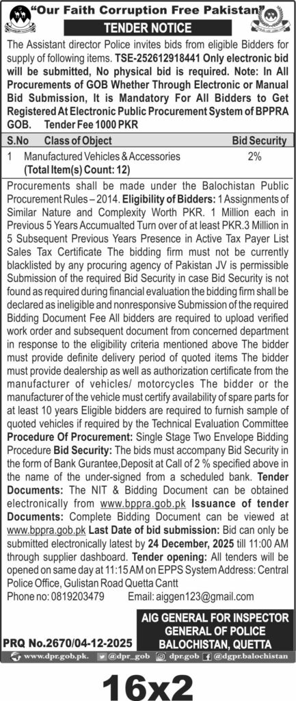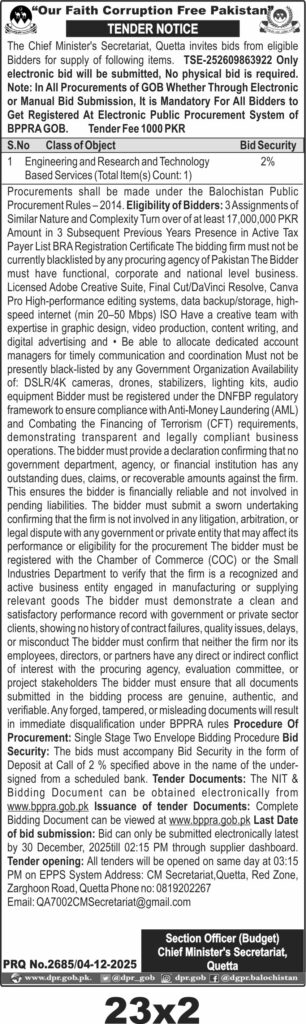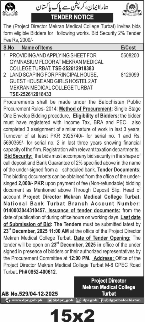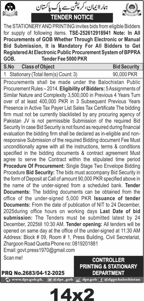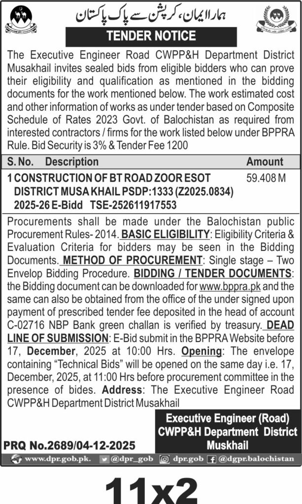 TendersDGPR ADVERTISEMENTSDecember 5, 2025December 5, 2025Comments (0)Advertisement Section DGPR 04-12-2025
