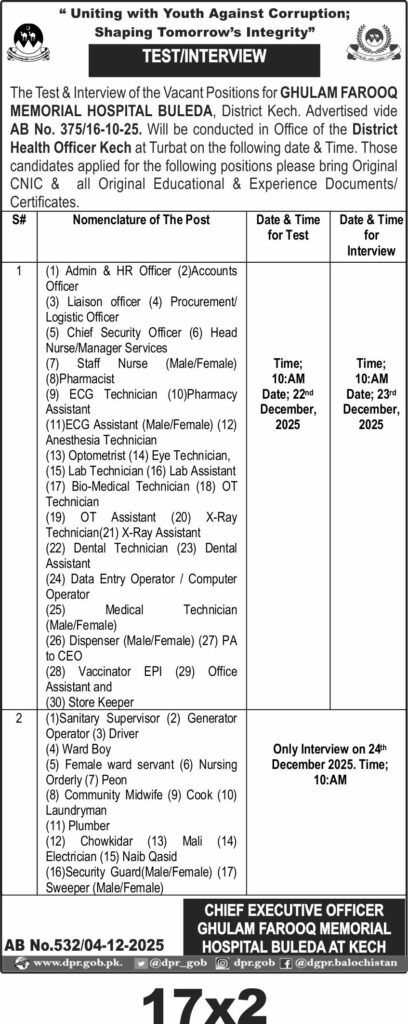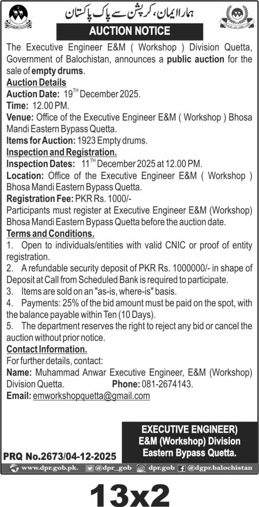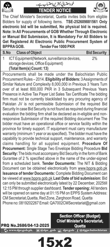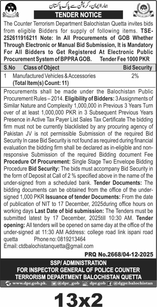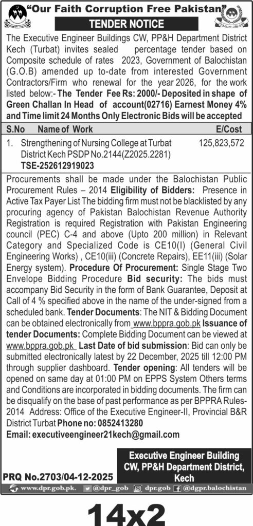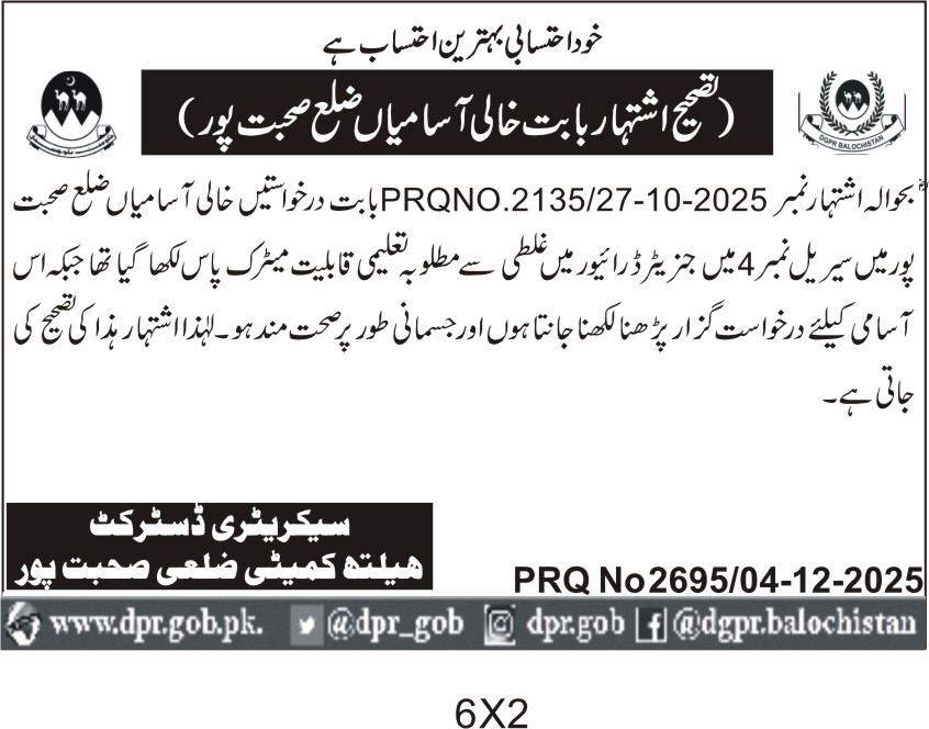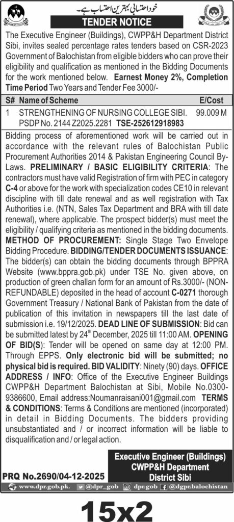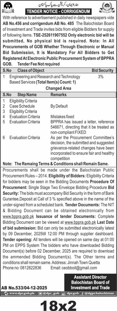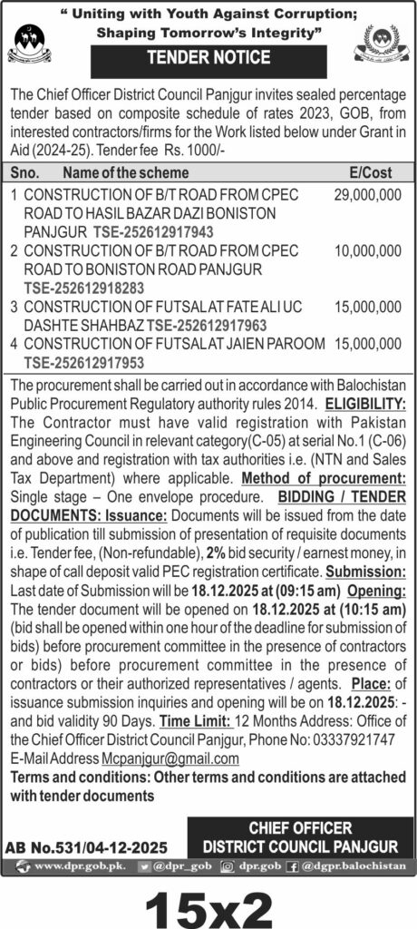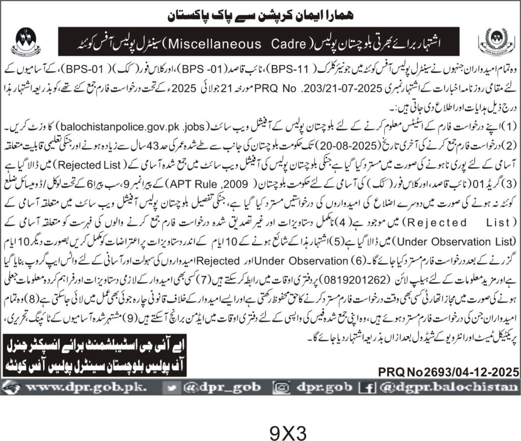 TendersDGPR ADVERTISEMENTSDecember 5, 2025December 5, 2025Comments (0)Advertisement Section DGPR 04-12-2025