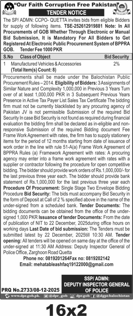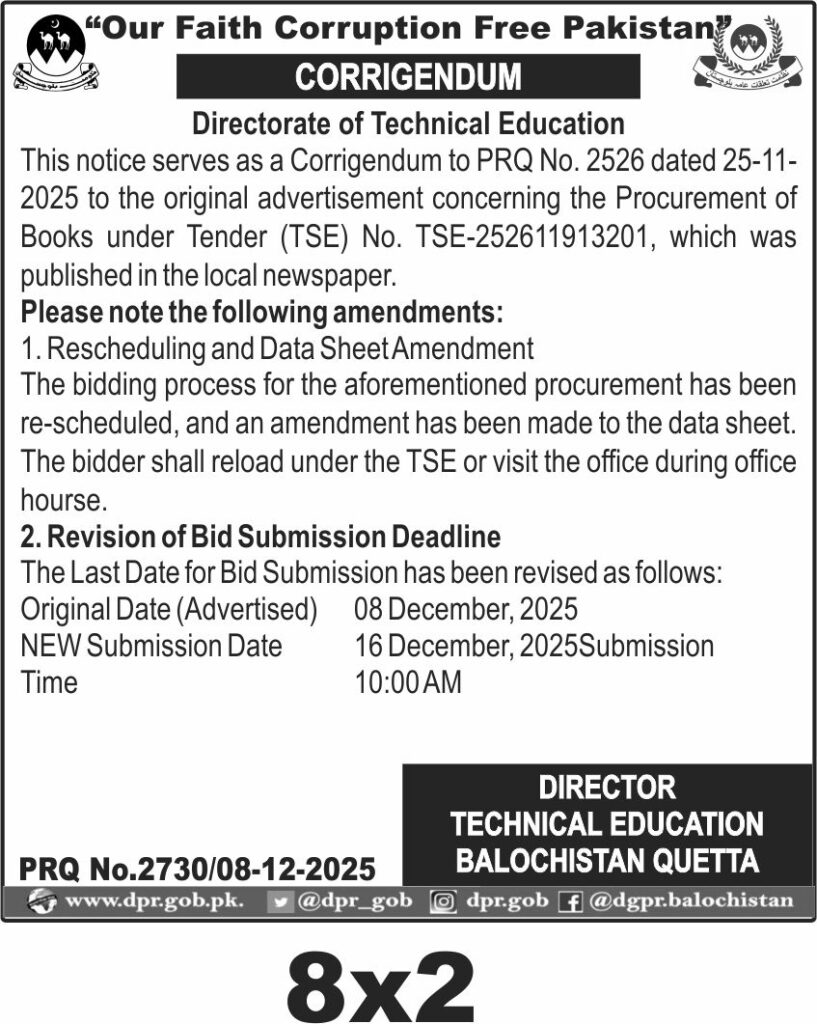 TendersDGPR ADVERTISEMENTSDecember 9, 2025December 9, 2025Comments (0)Advertisement Section DGPR 08-12-2025