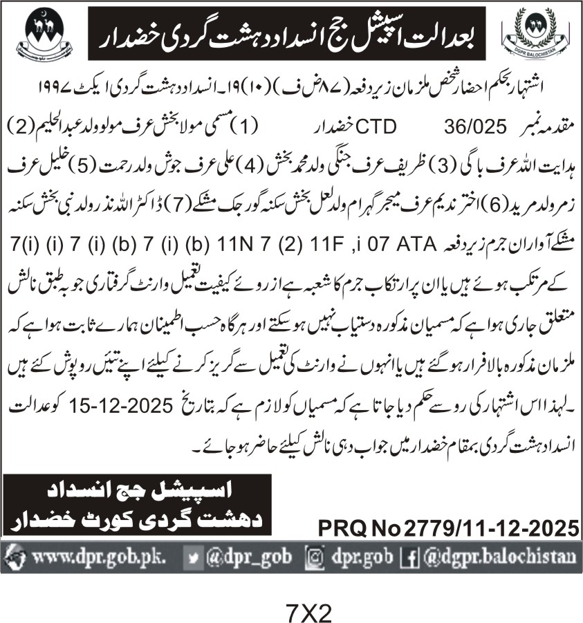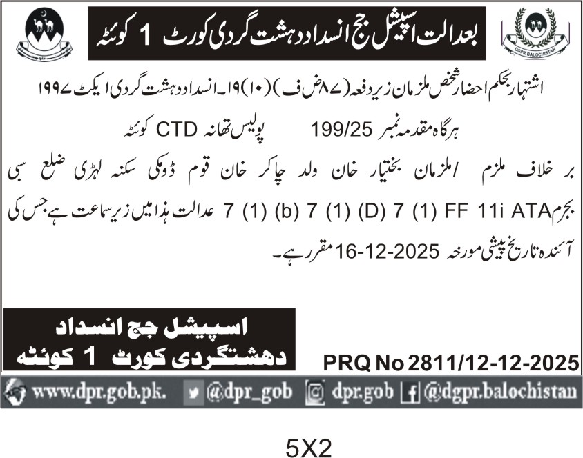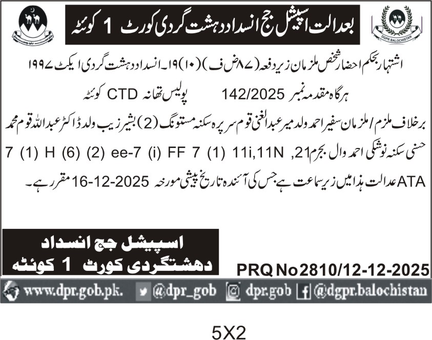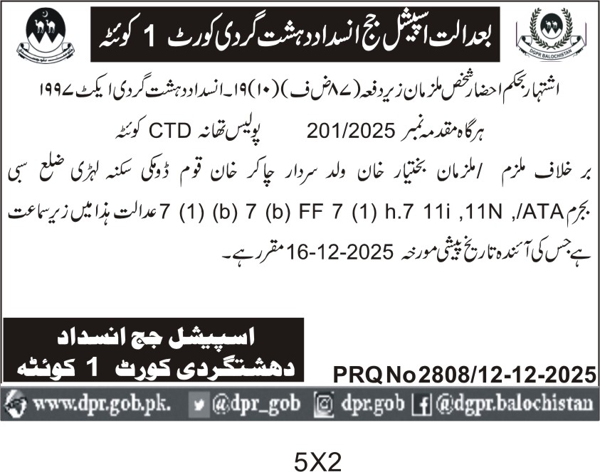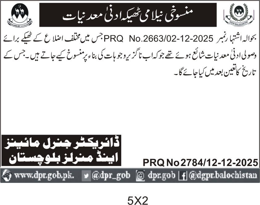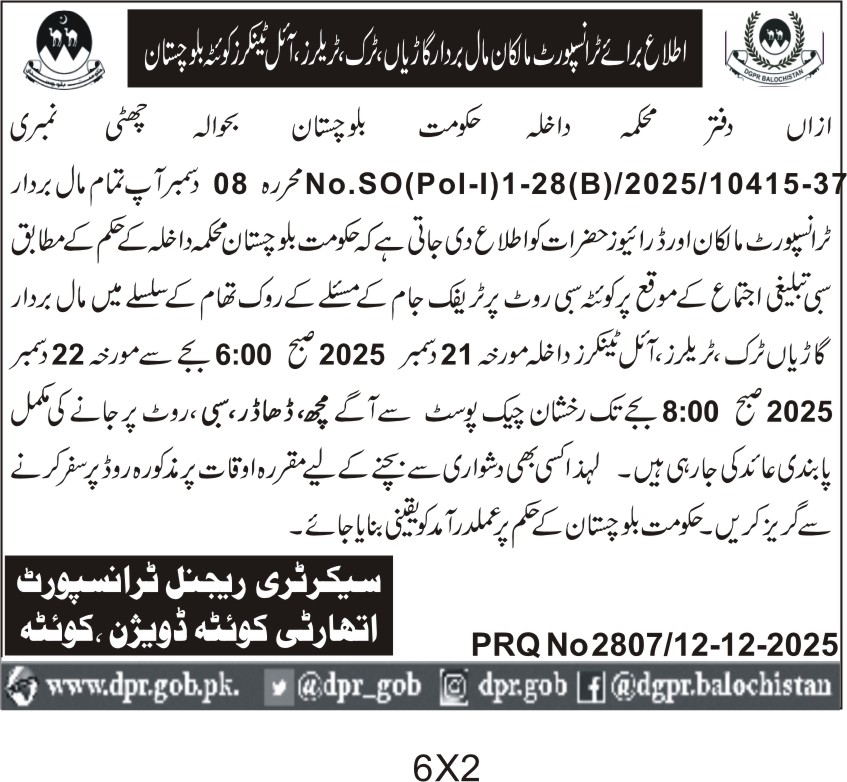All the day's headlines and highlights from The Directorate of General Public Relations Balochistan, direct to you every morning.