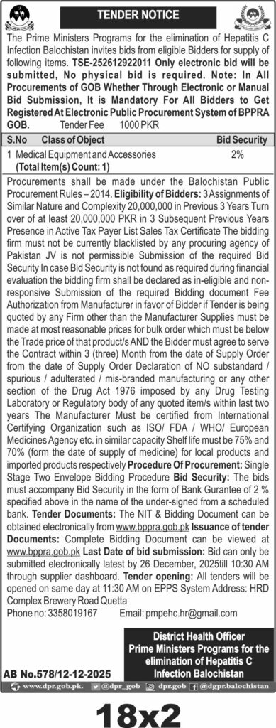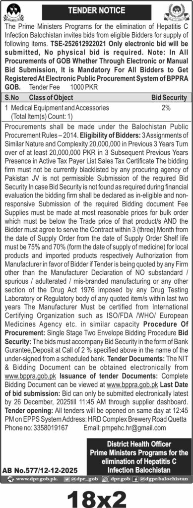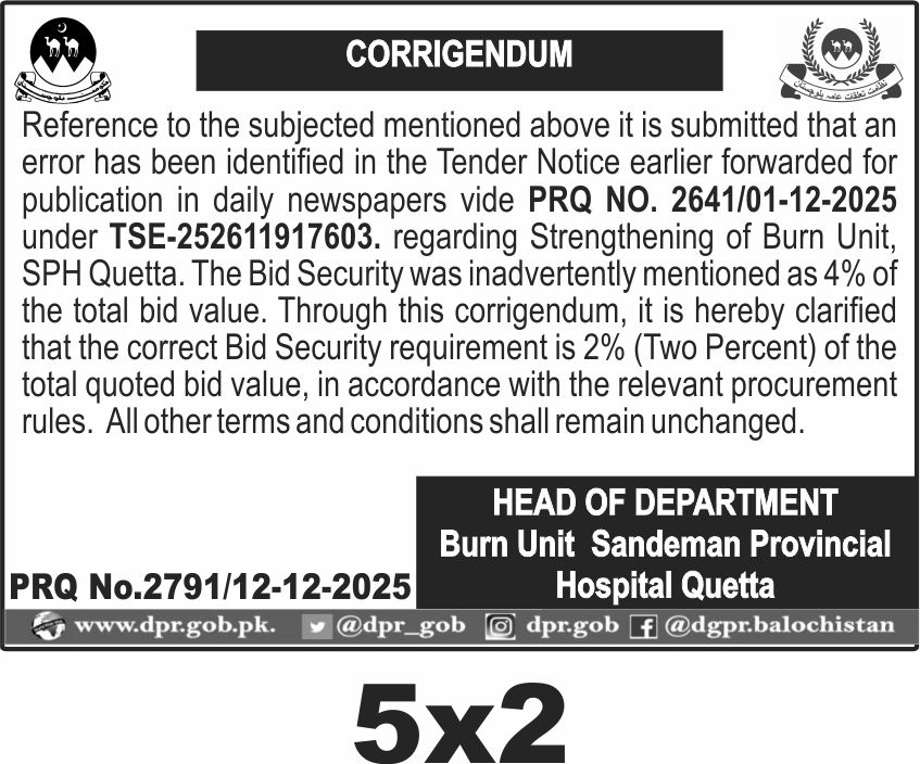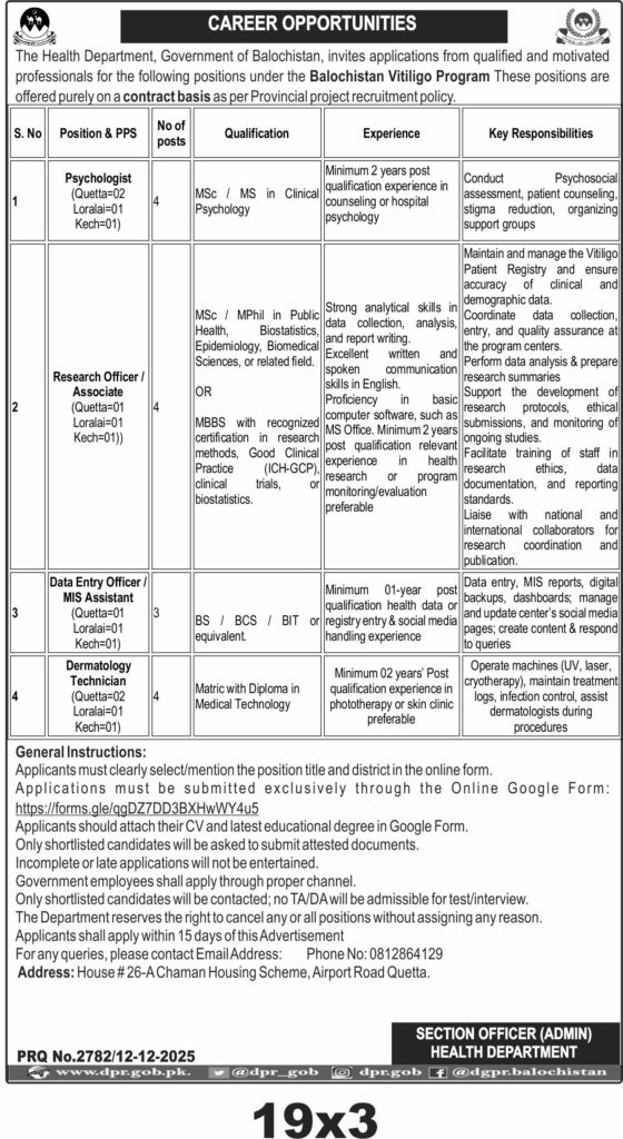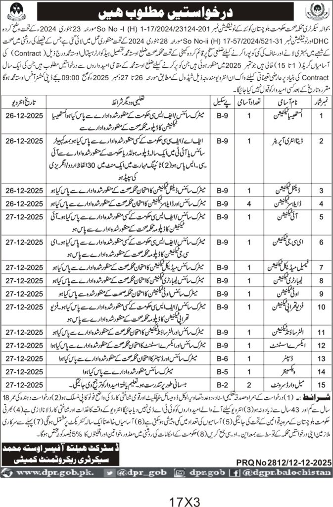 Corrigendum Regarding Vacancies – Health Department Balochistan