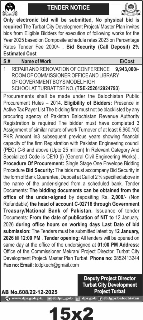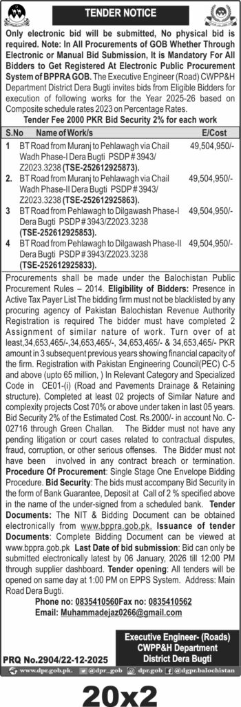 TendersDGPR ADVERTISEMENTSDecember 23, 2025December 23, 2025Comments (0)Advertisement Section DGPR 22-12-2025