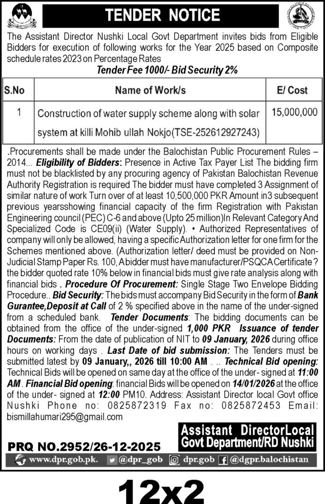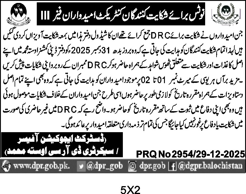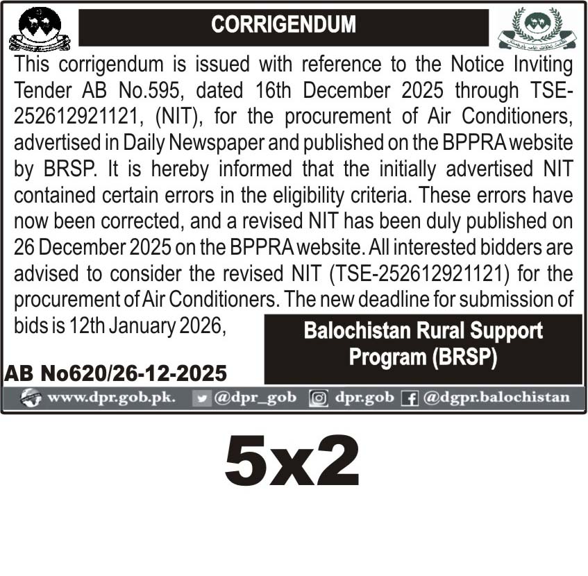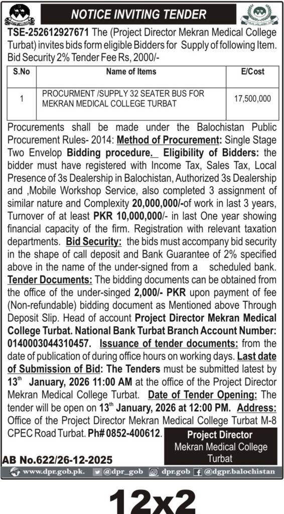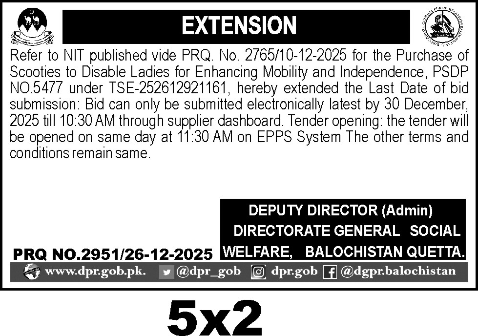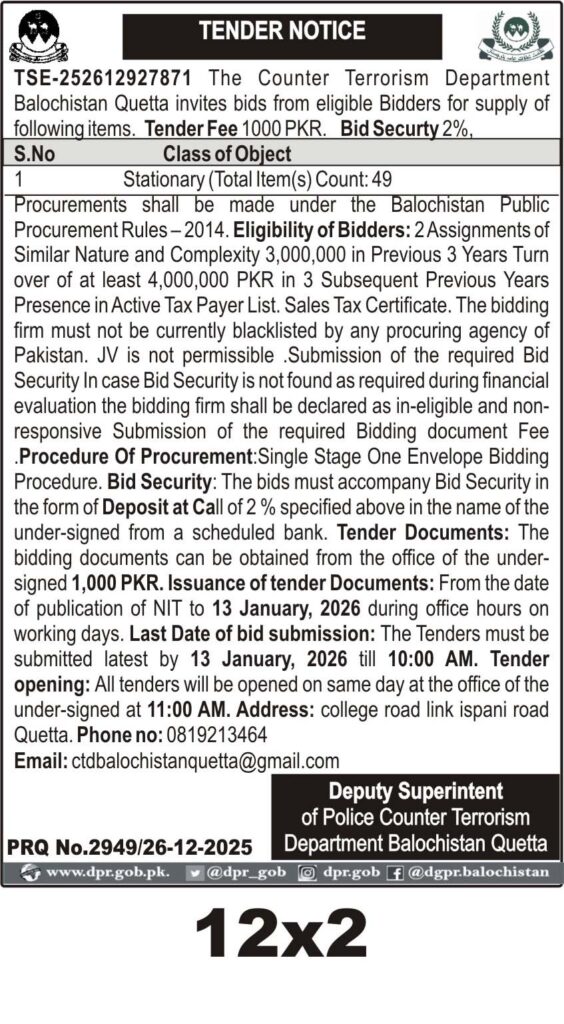 TendersDGPR ADVERTISEMENTSDecember 30, 2025December 30, 2025Comments (0)Advertisement Section DGPR 26-12-2025