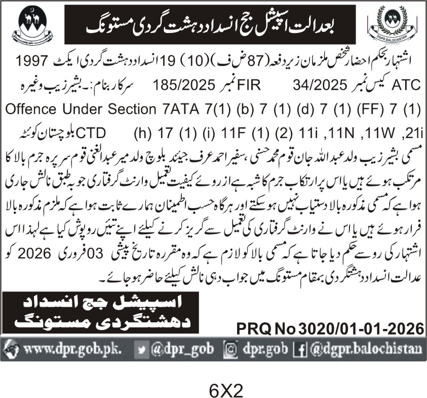 All the day's headlines and highlights from The Directorate of General Public Relations Balochistan, direct to you every morning.