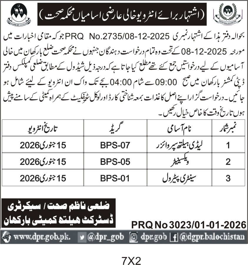 Applications Invited for Temporary Vacant Posts at DHQ Hospital Dera Allah Yar