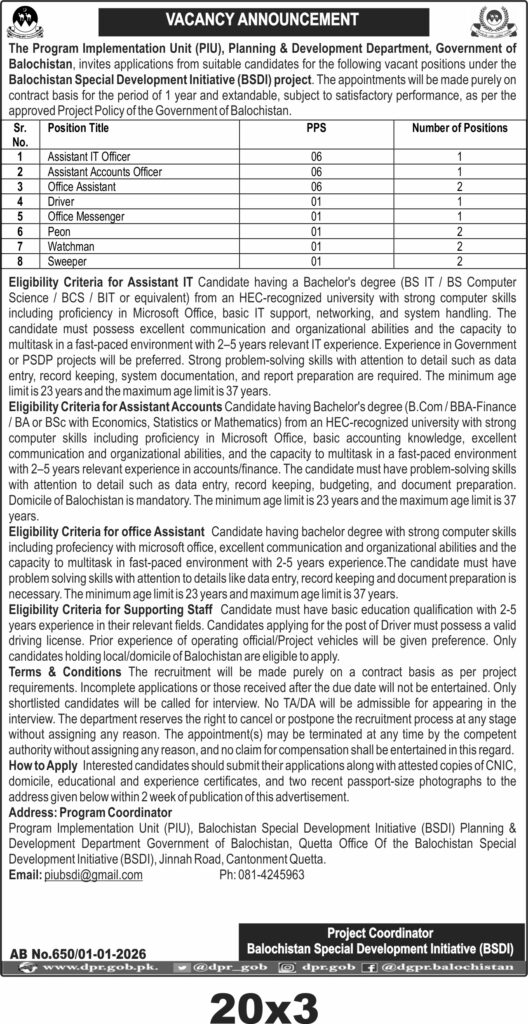 Previous PostTest Announcement: BPSC Releases Syllabus for Treasury Accountant and Assistant Director (Law & Parliamentary Affairs) ExaminationsNext PostApplications Invited for Temporary Recruitment to Class IV Vacant Positions at the Provincial Ombudsman Secretariat, Balochistan