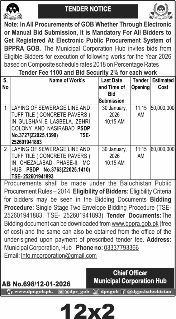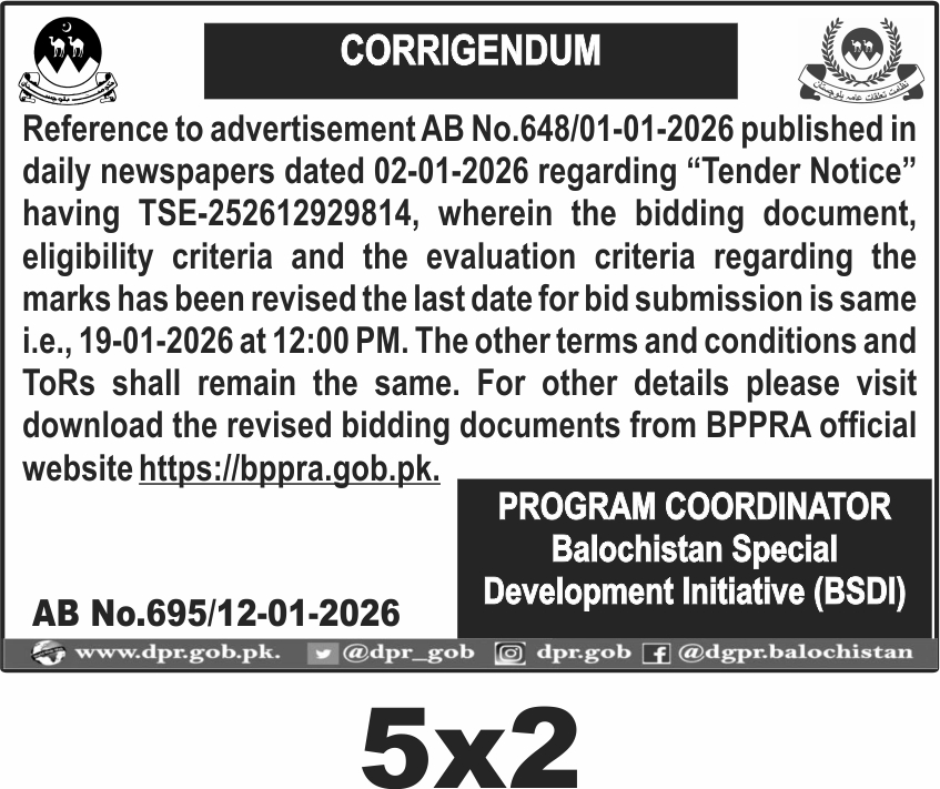 TendersDGPR ADVERTISEMENTSJanuary 13, 2026January 13, 2026Comments (0)Advertisement Section DGPR 12-01-2026