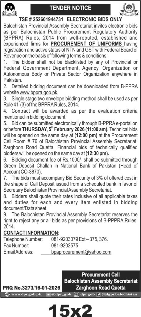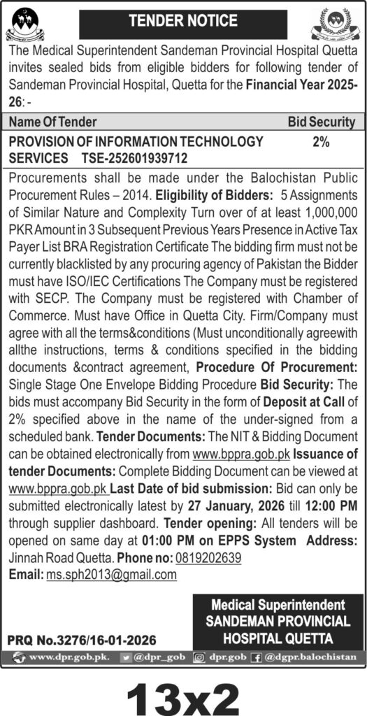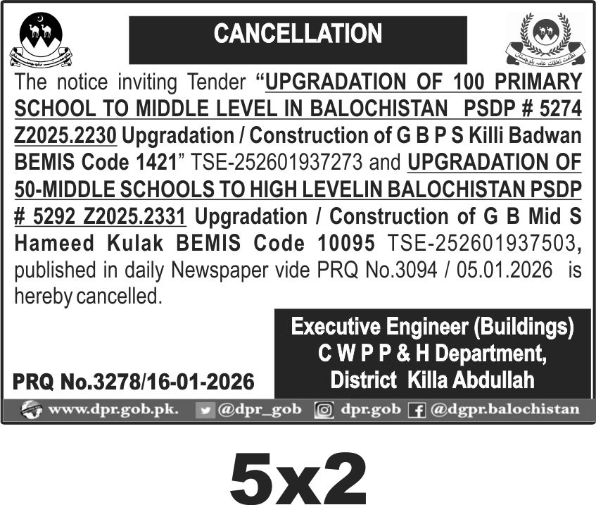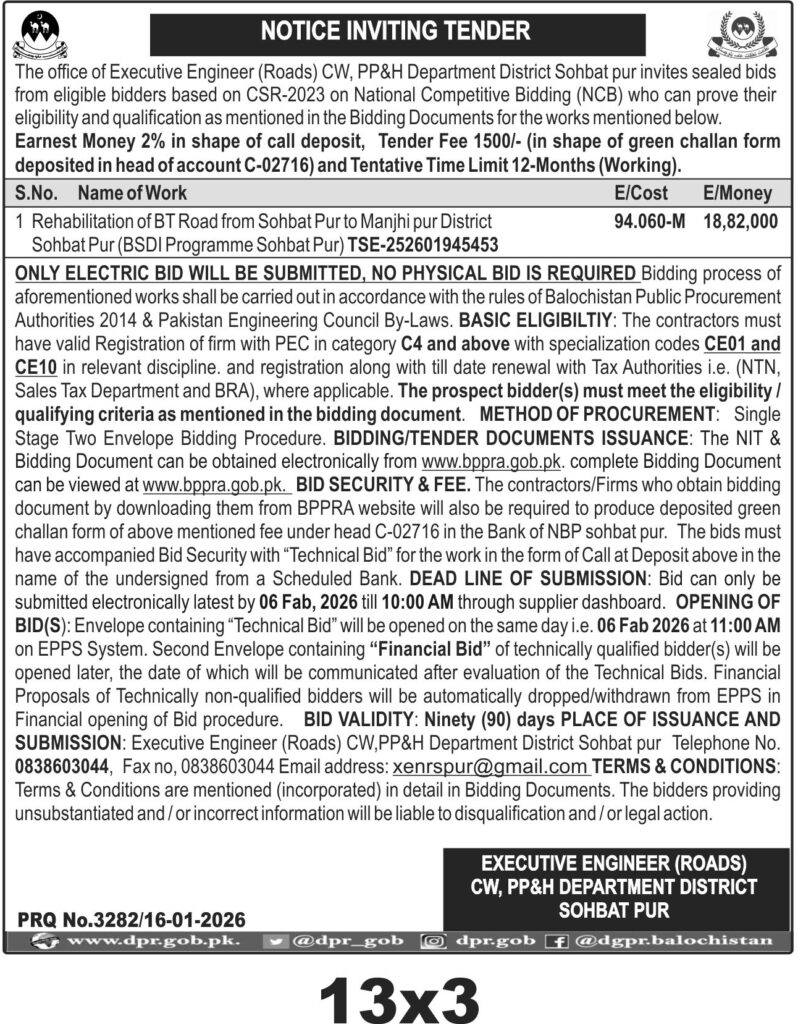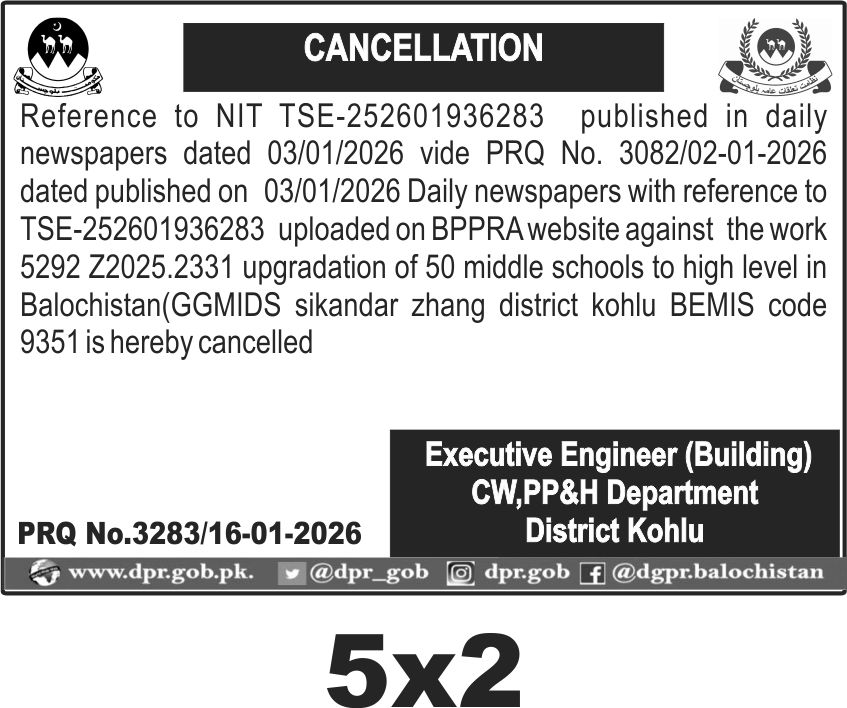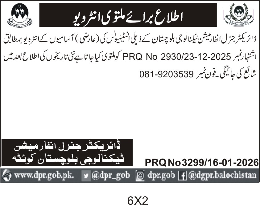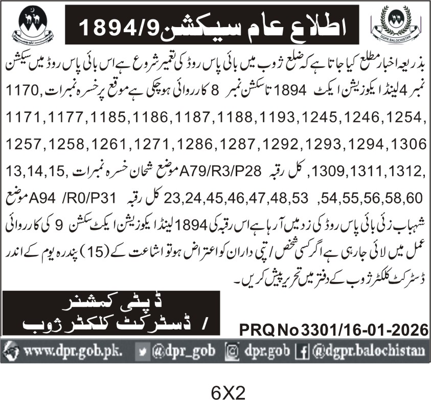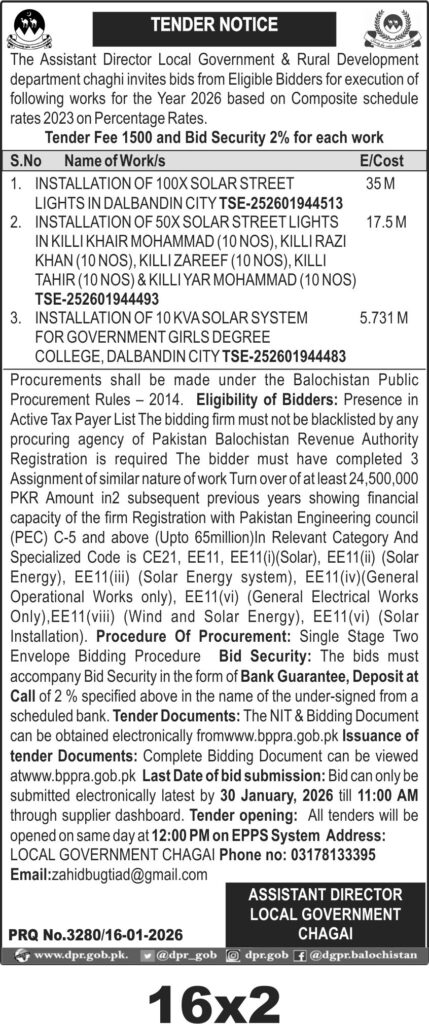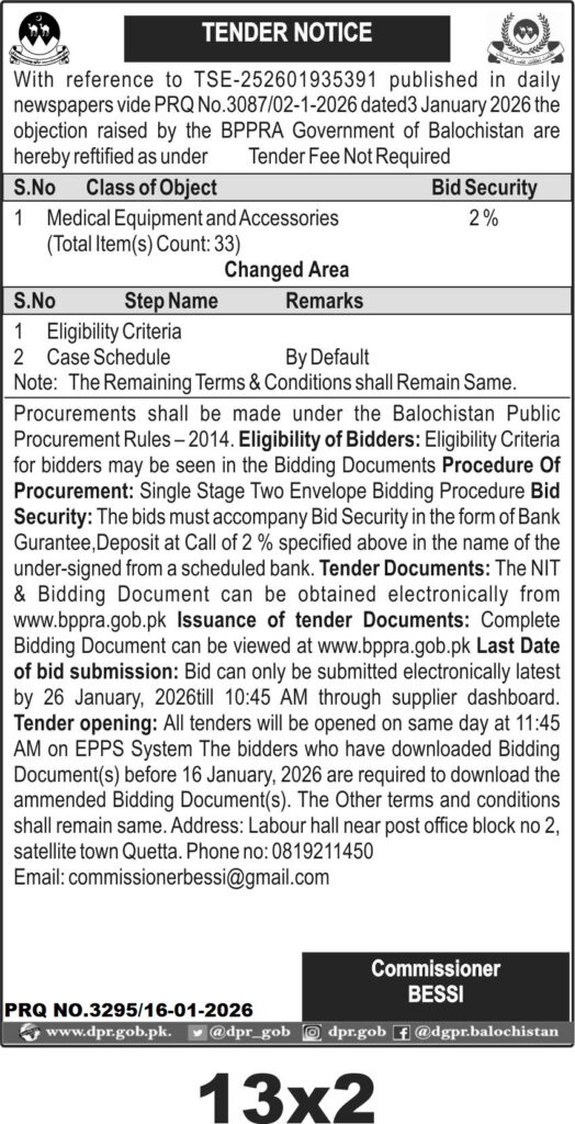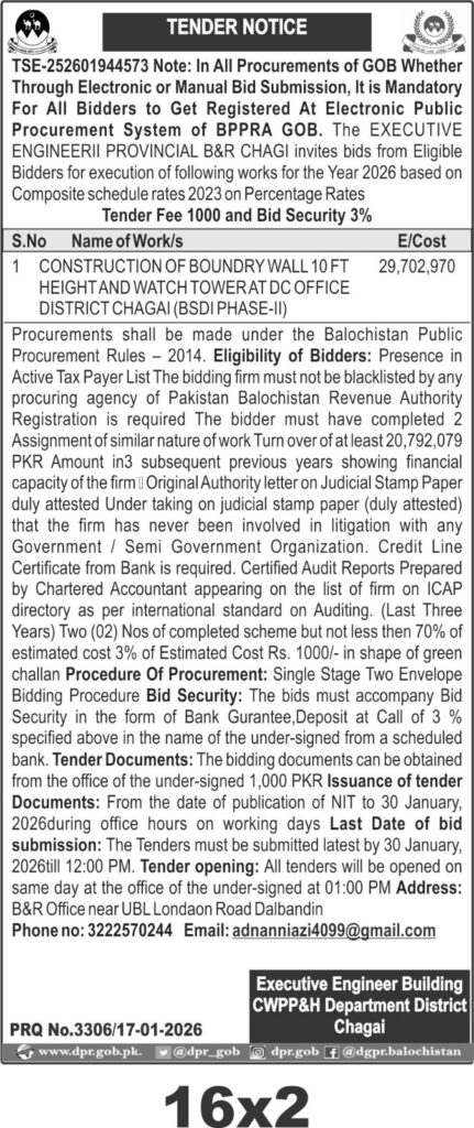 TendersDGPR ADVERTISEMENTSJanuary 19, 2026January 19, 2026Comments (0)Advertisement Section DGPR 16-01-2026