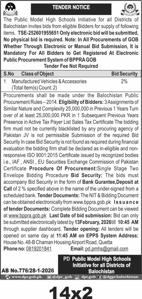 TendersDGPR ADVERTISEMENTSJanuary 29, 2026January 29, 2026Comments (0)Advertisement Section DGPR 28-01-2026