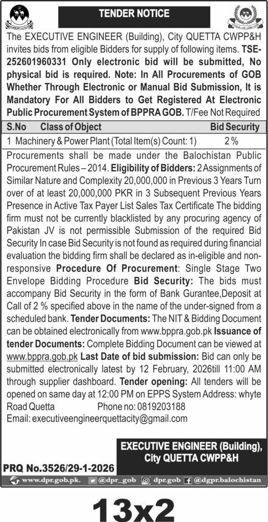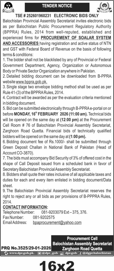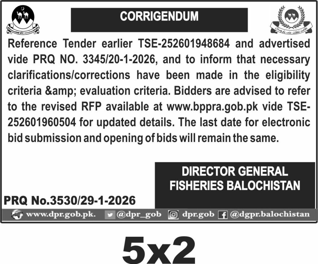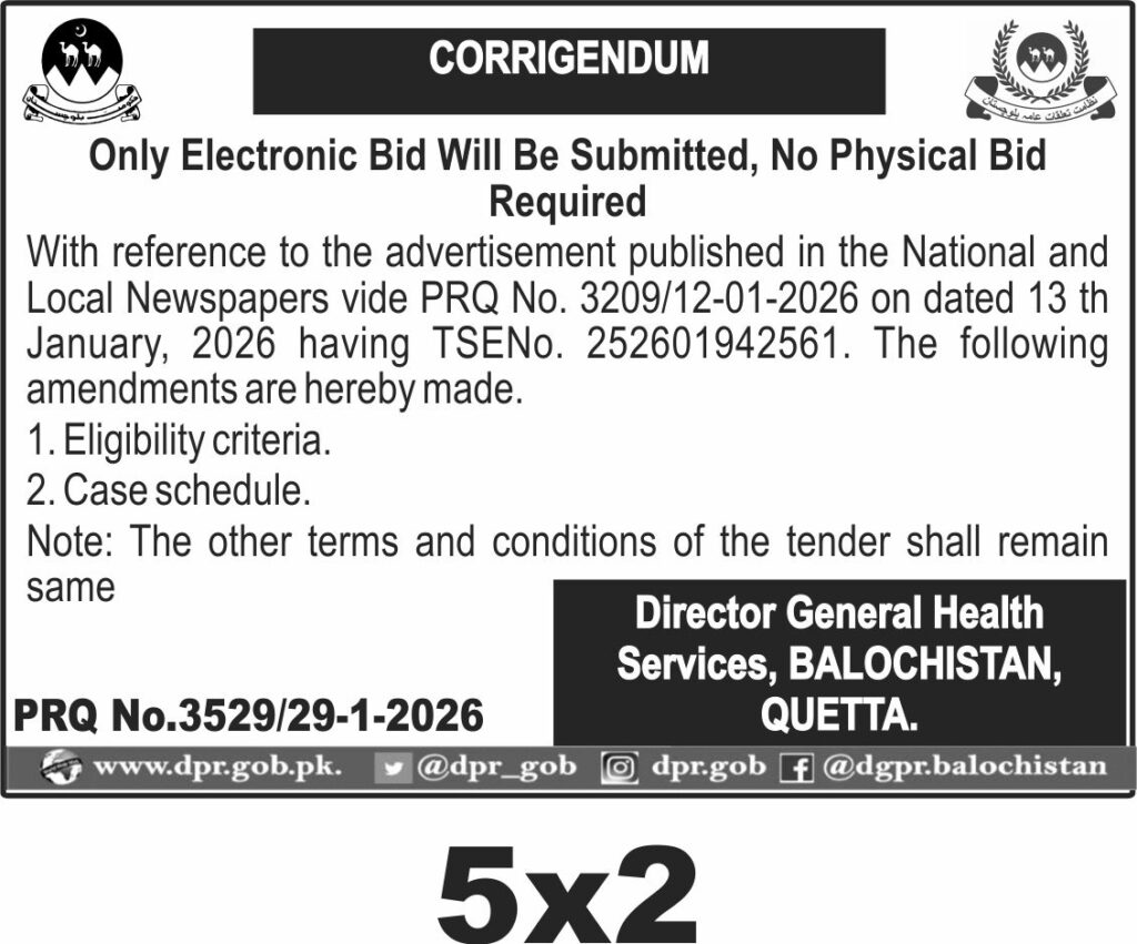 TendersDGPR ADVERTISEMENTSJanuary 30, 2026January 30, 2026Comments (0)Advertisement Section DGPR 29-01-2026