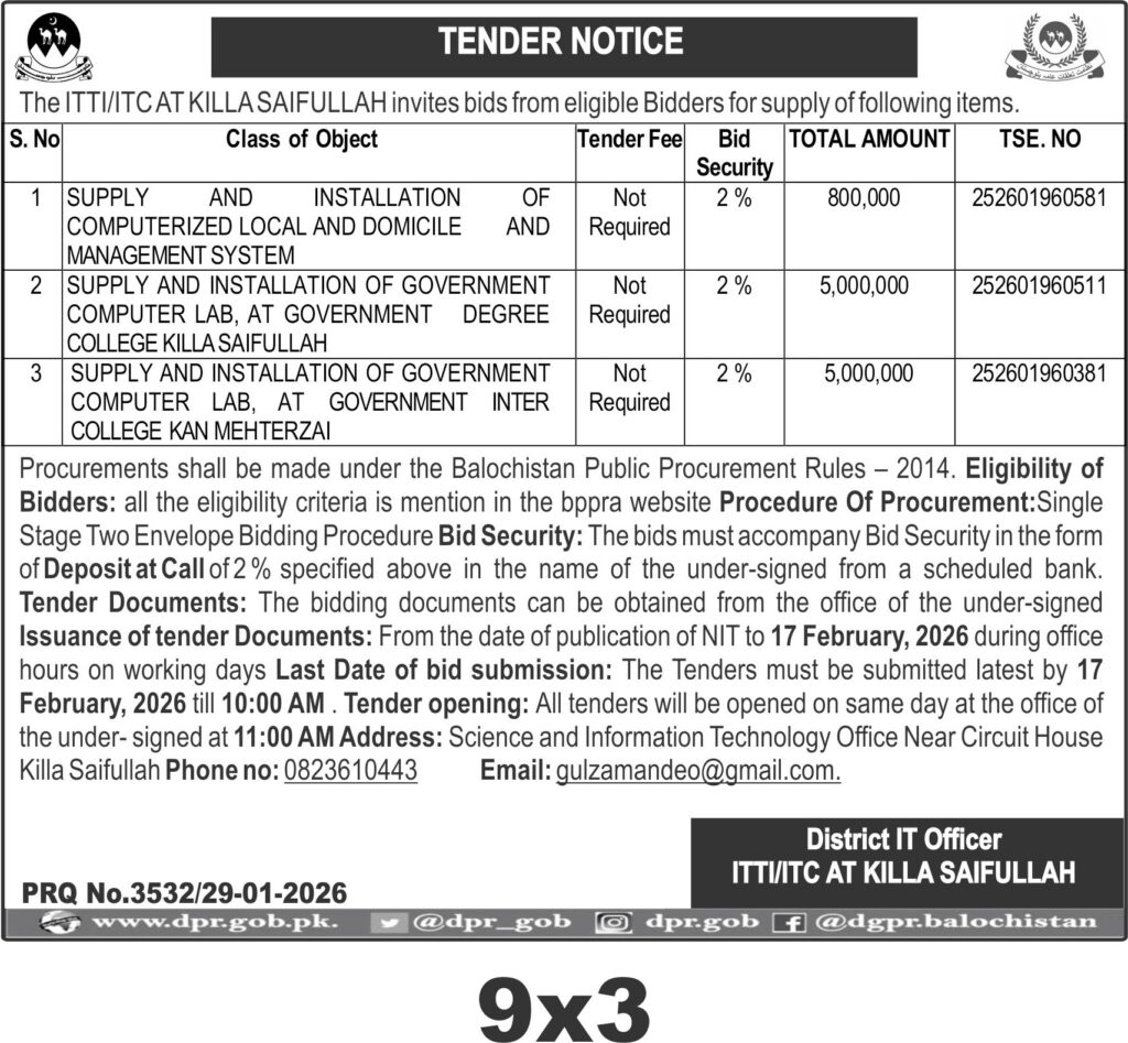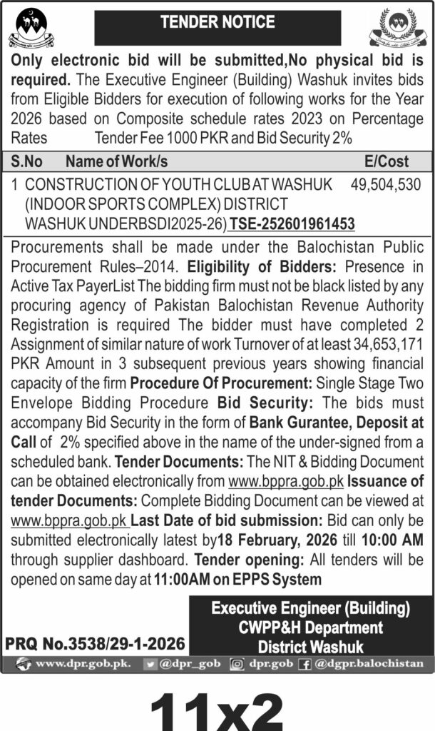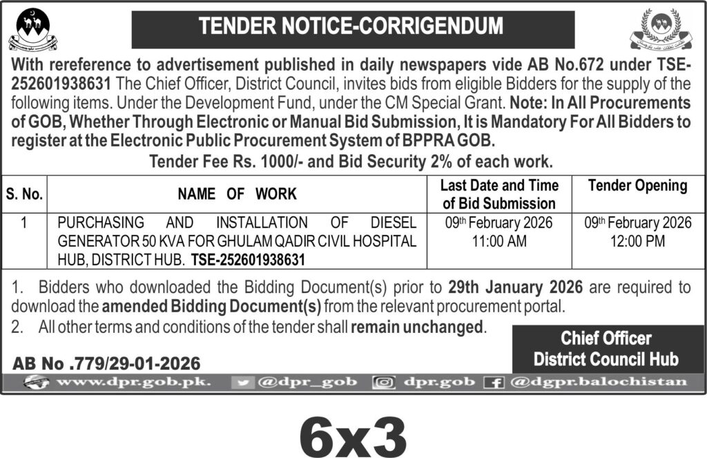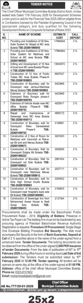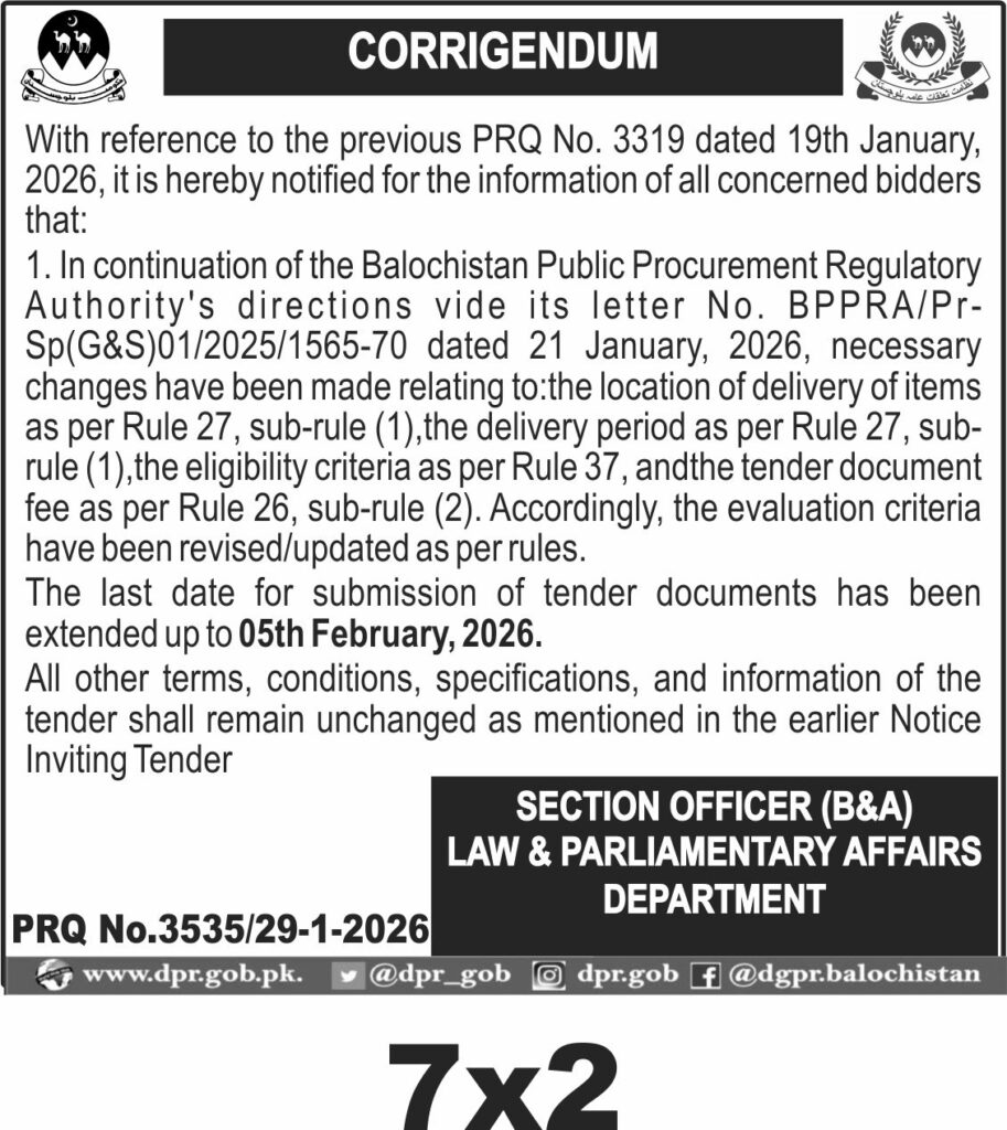 TendersDGPR ADVERTISEMENTSJanuary 30, 2026January 30, 2026Comments (0)Advertisement Section DGPR 29-01-2026