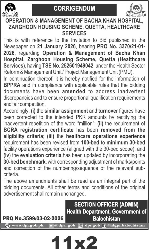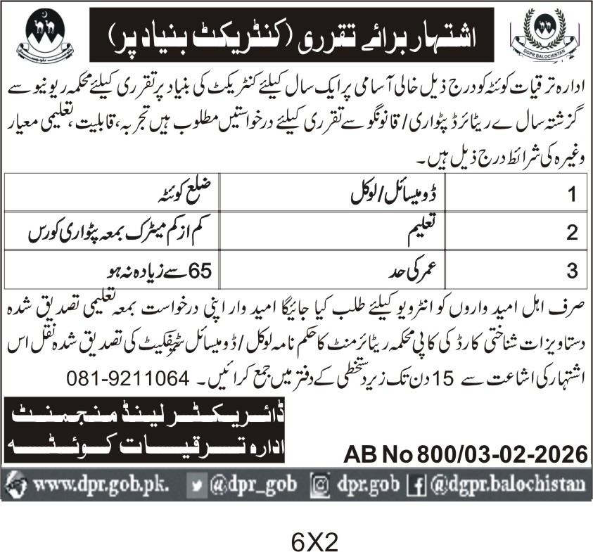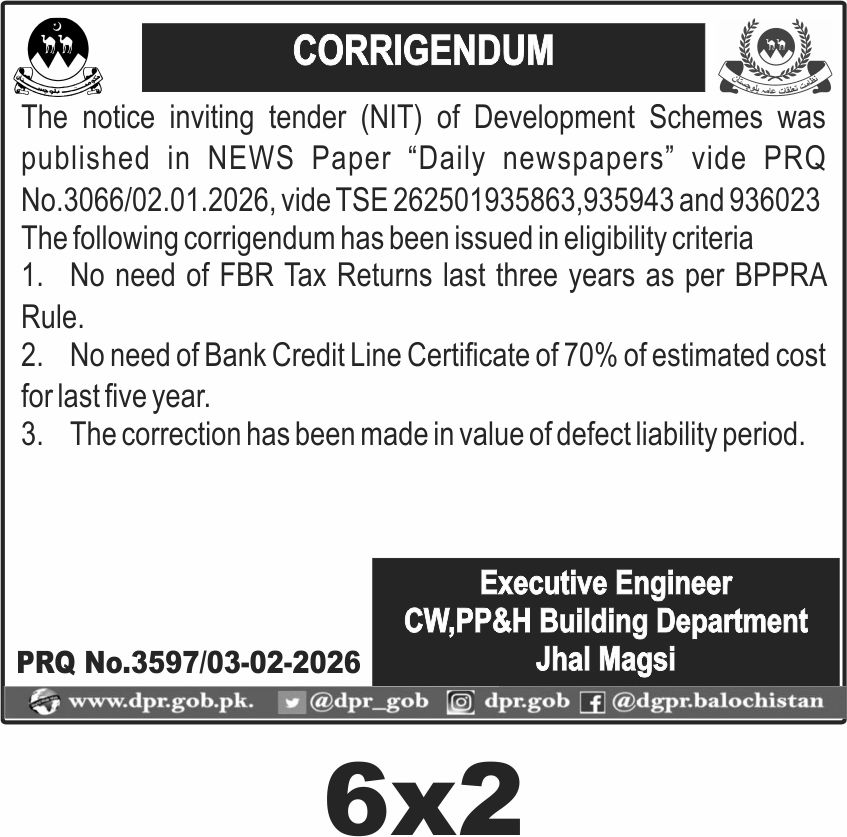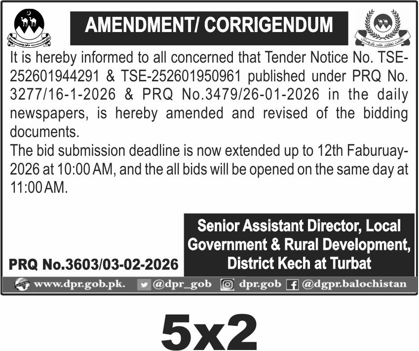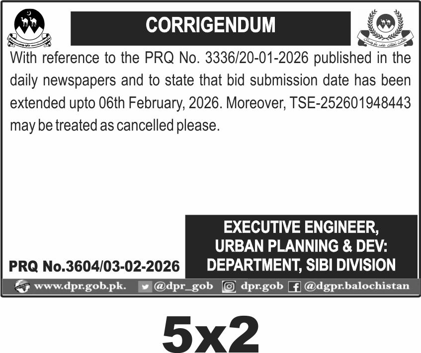 TendersDGPR ADVERTISEMENTSFebruary 4, 2026February 4, 2026Comments (0)Advertisement Section DGPR 03-02-2026