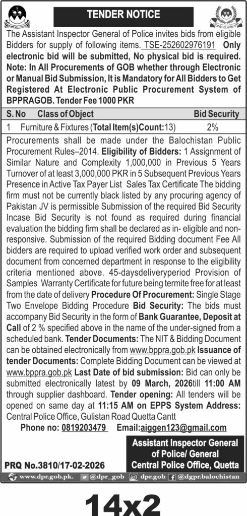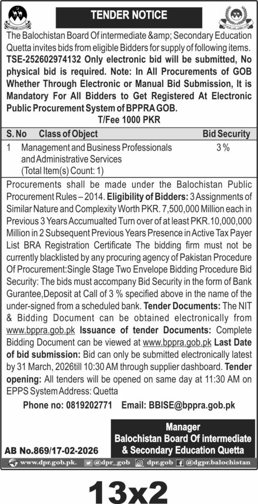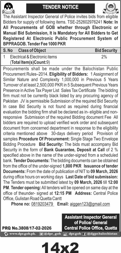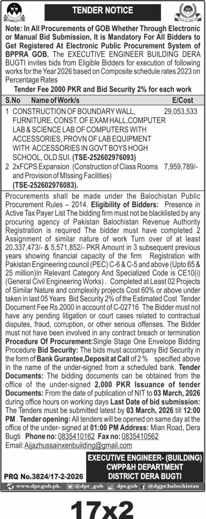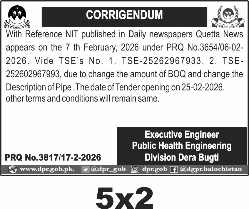 TendersDGPR ADVERTISEMENTSFebruary 18, 2026February 18, 2026Comments (0)Advertisement Section DGPR 17-02-2026