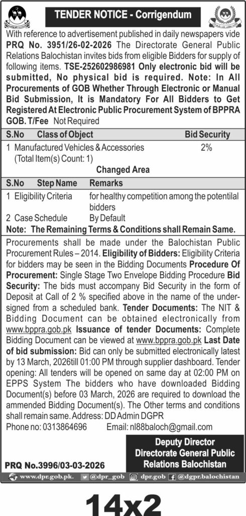 All the day's headlines and highlights from The Directorate of General Public Relations Balochistan, direct to you every morning.