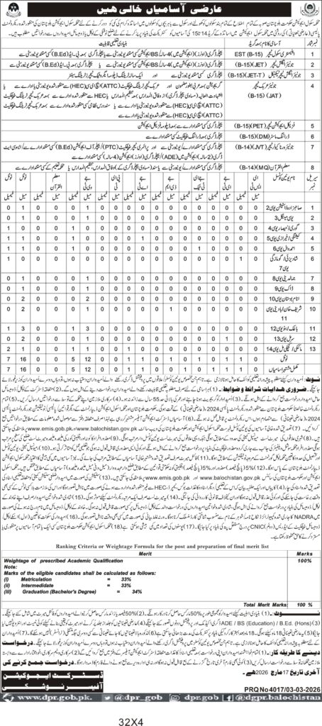 Applications Invited for Temporary Vacancies (Grade 14–15) in the School Education Department, Balochistan, for Candidates from Nushki District