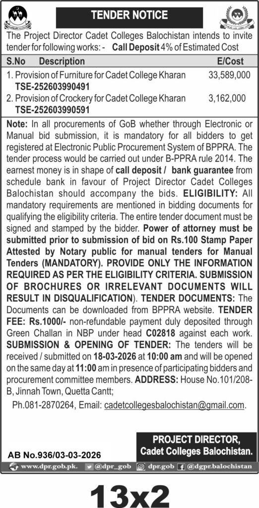 Previous PostApplications Invited for Temporary Vacancies at Cadet College Qila Abdullah, Chaman, for Eligible Local/Domicile Candidates of Balochistan