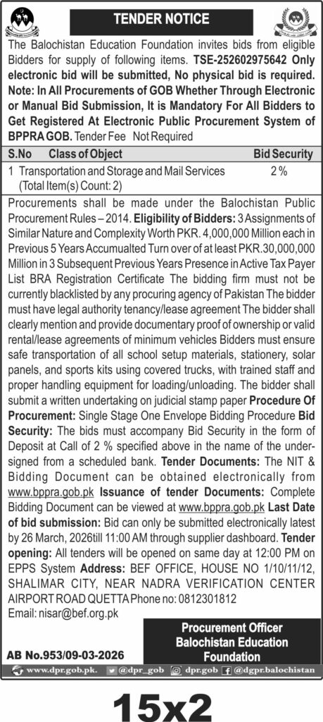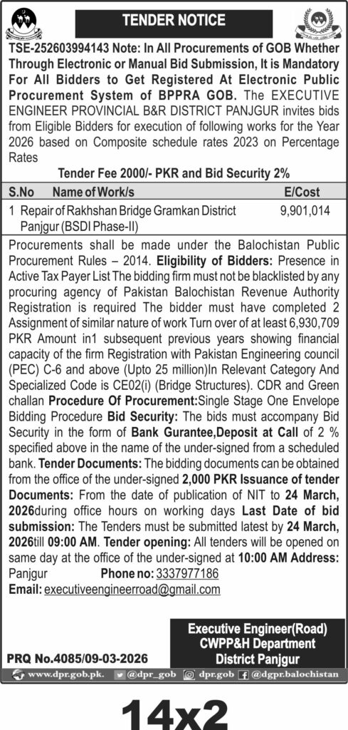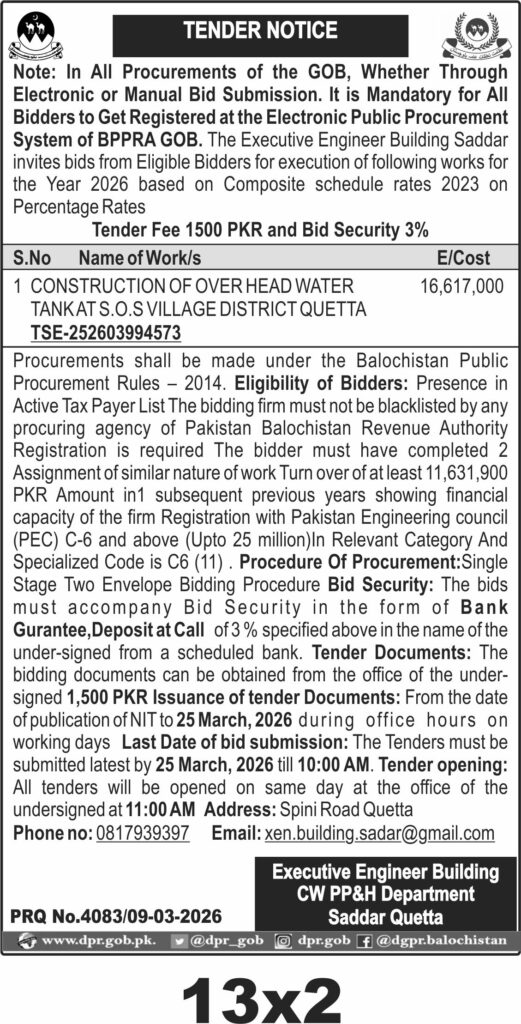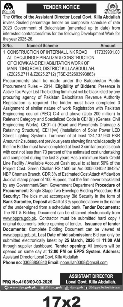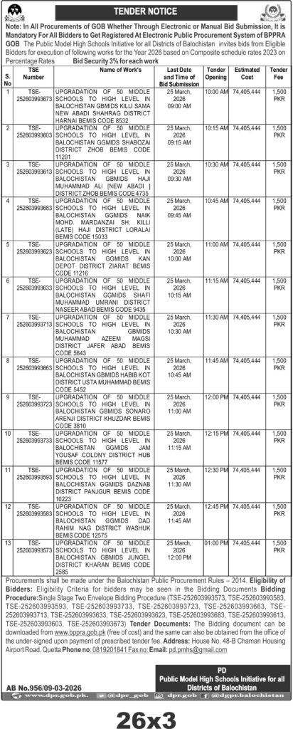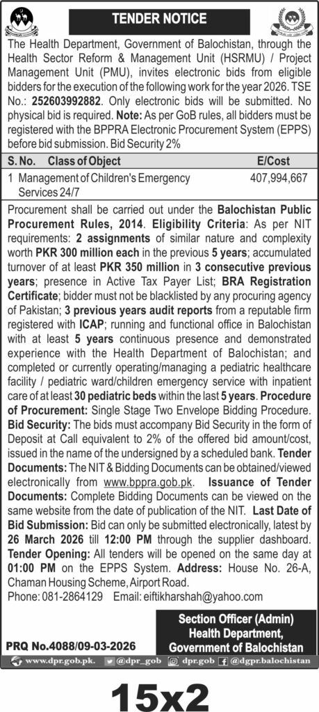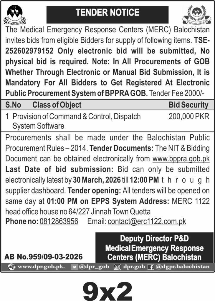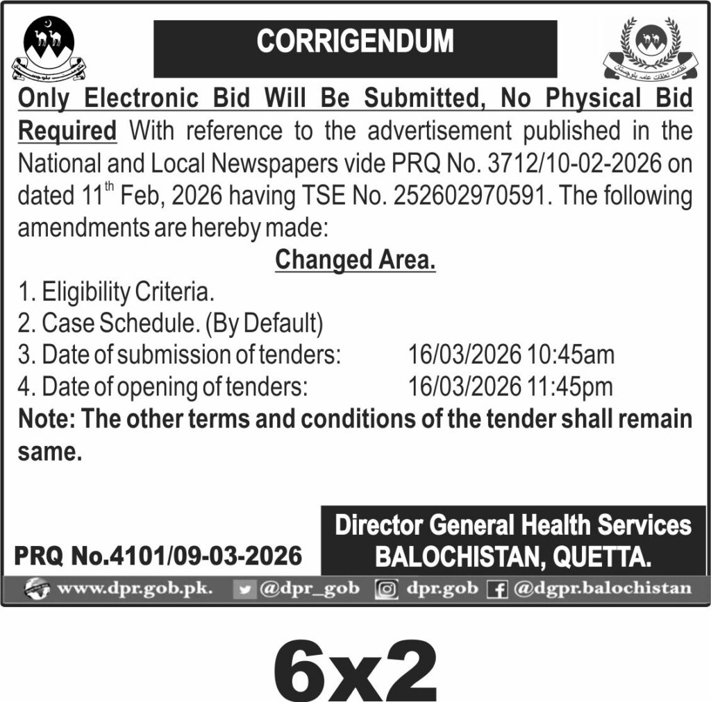 TendersDGPR ADVERTISEMENTSMarch 10, 2026March 10, 2026Comments (0)Advertisement Section DGPR 09-03-2026