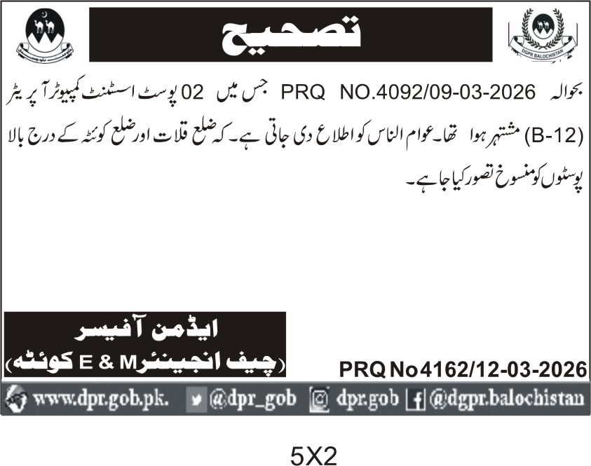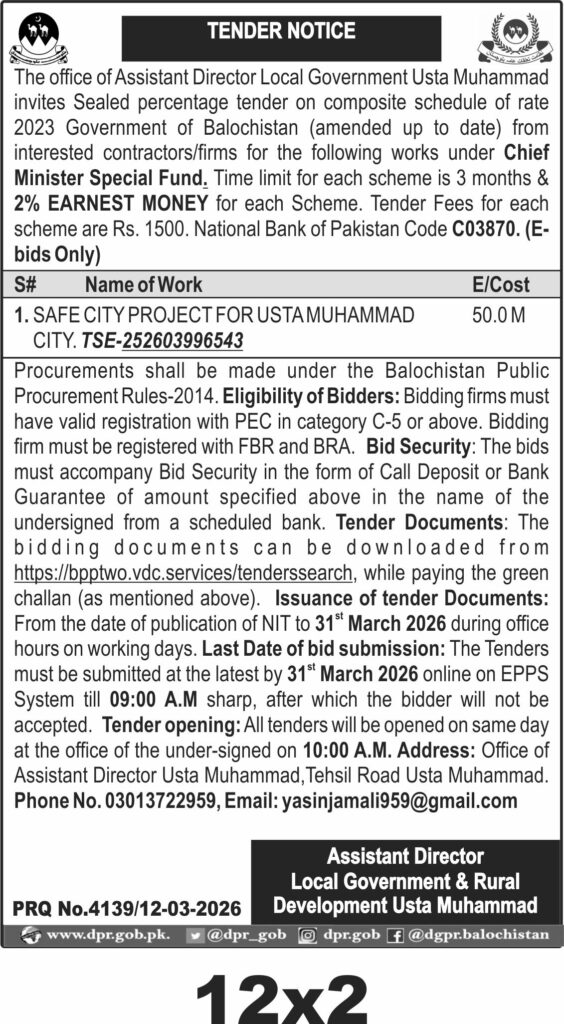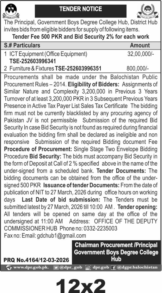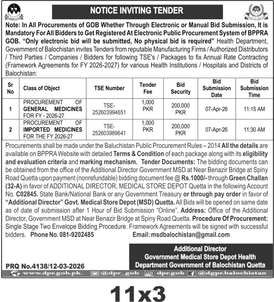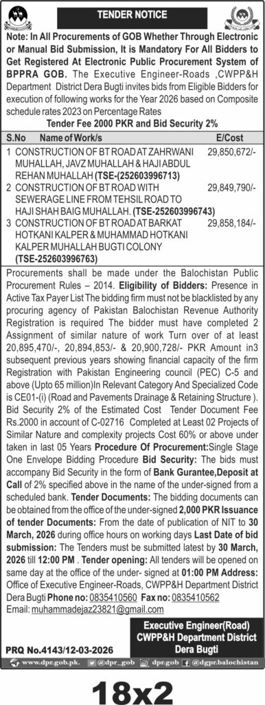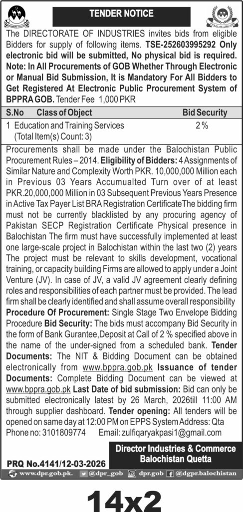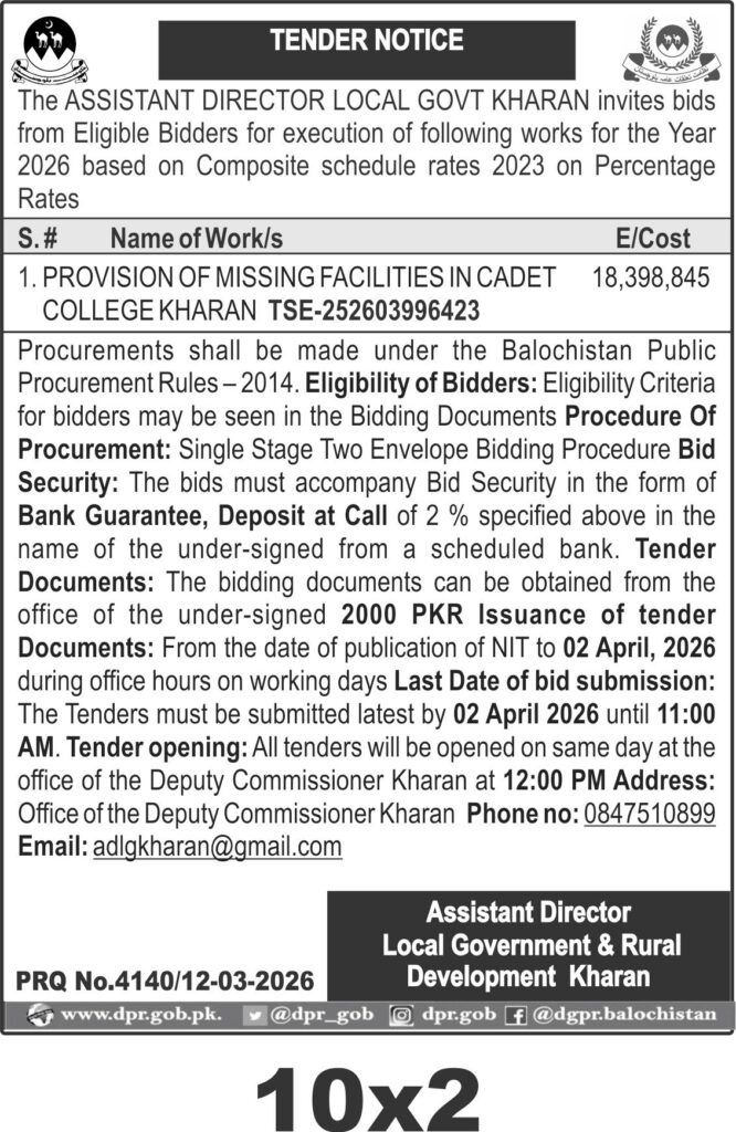TendersDGPR ADVERTISEMENTSMarch 16, 2026March 16, 2026Comments (0)Advertisement Section DGPR 12-03-2026
