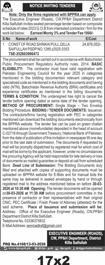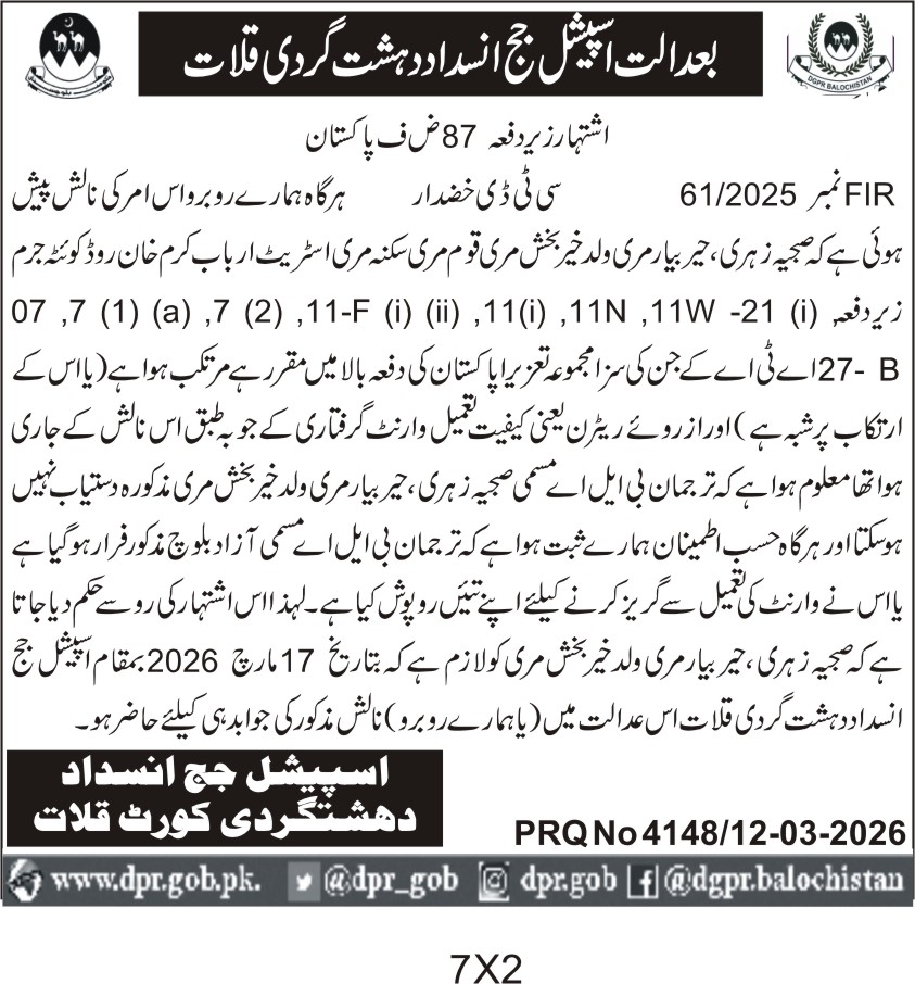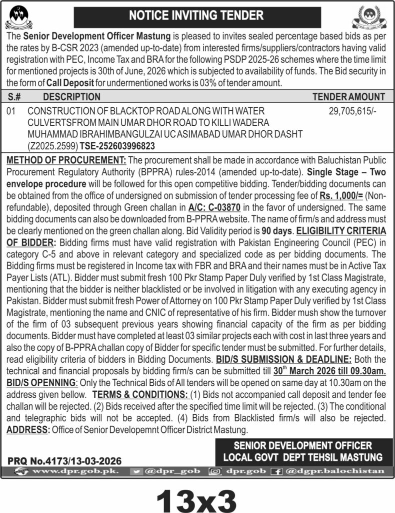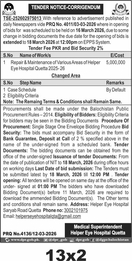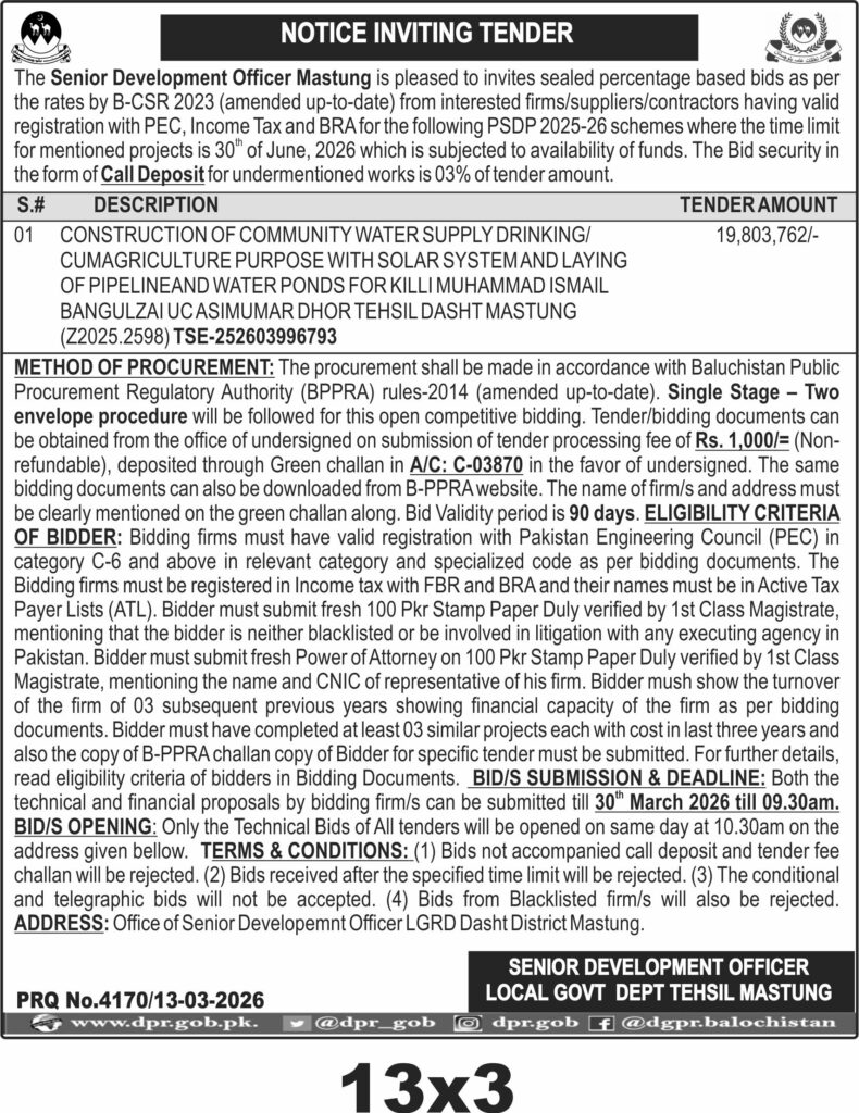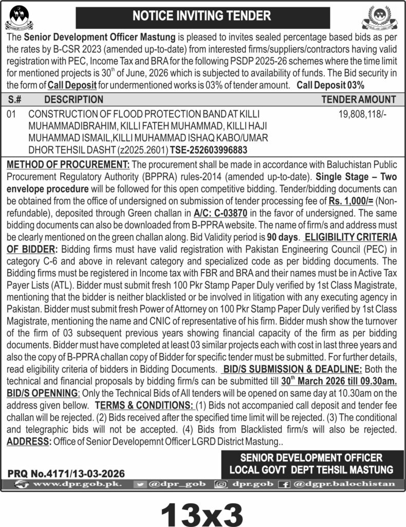 TendersDGPR ADVERTISEMENTSMarch 16, 2026March 16, 2026Comments (0)Advertisement Section DGPR 12-03-2026