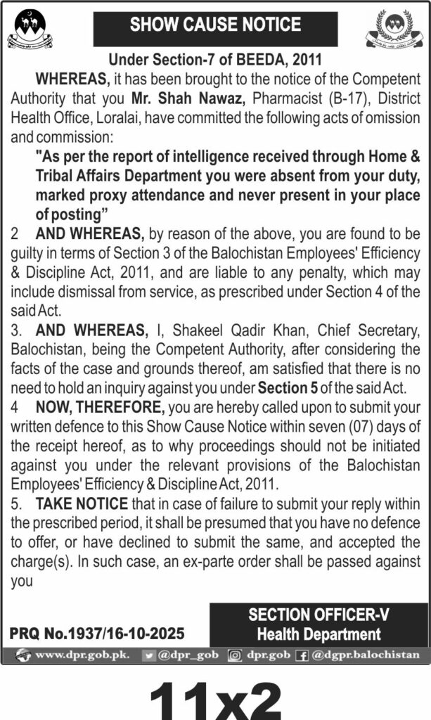 Information Department of West Pakistan Government was working before 1971. After the creation of province of Balochistan,the Information Wing with its attached Directorate i.e. Directorate of Public Relations was established. This Information Wing remained combined/integrated with various departments like Home,S&GAD,Culture/Tourism and I.T,finally it was bifurcated from I.T Department in 2008,since then it is functioning as a fully-fledged department independently.