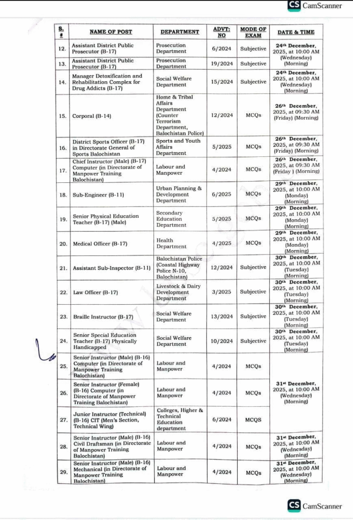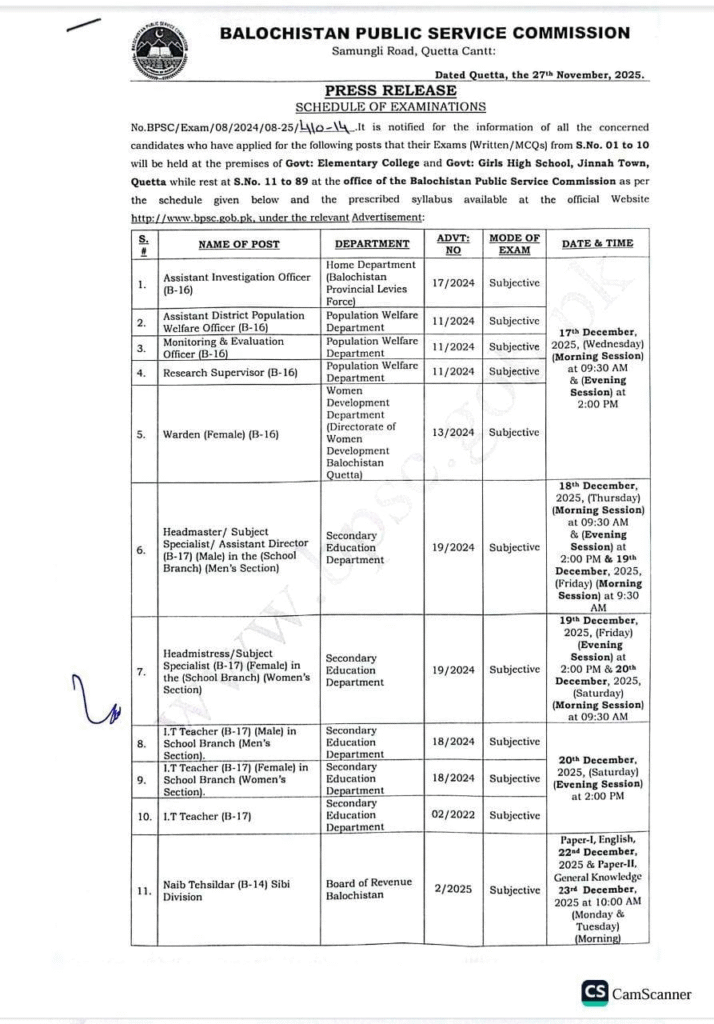 Adv-JobsExam Schedule Announced for BPSC BPS-16 to BPS-17 PostsNovember 28, 2025November 28, 2025Comments (0)Shams Ur Rehman Anas Hussain