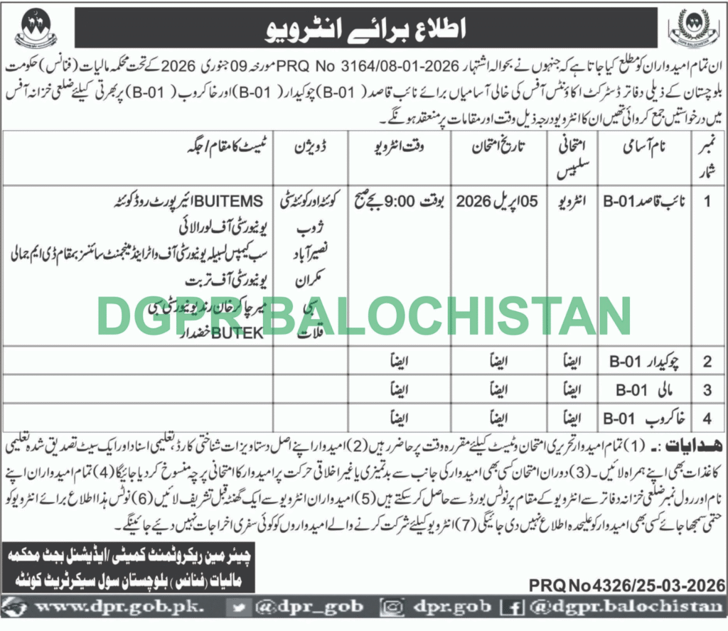 Previous Post23rd-March-2026Next PostInterview Notice – Vacancies in District Accounts Offices, Finance Department, Government of Balochistan
