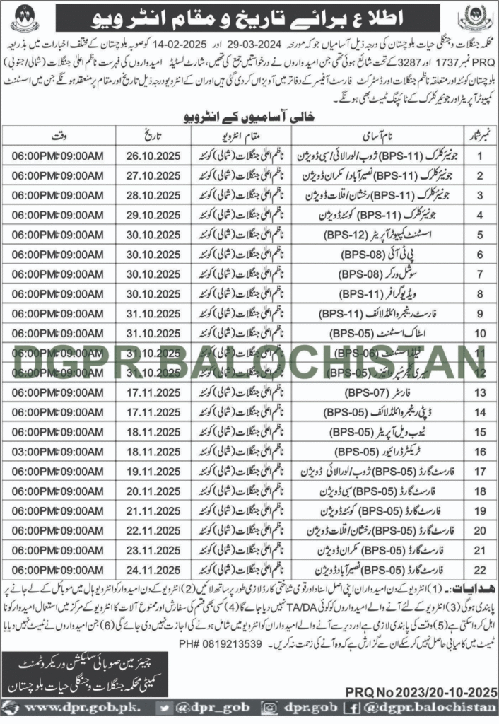 Interview Rescheduled – Forest and Wildlife Department Balochistan