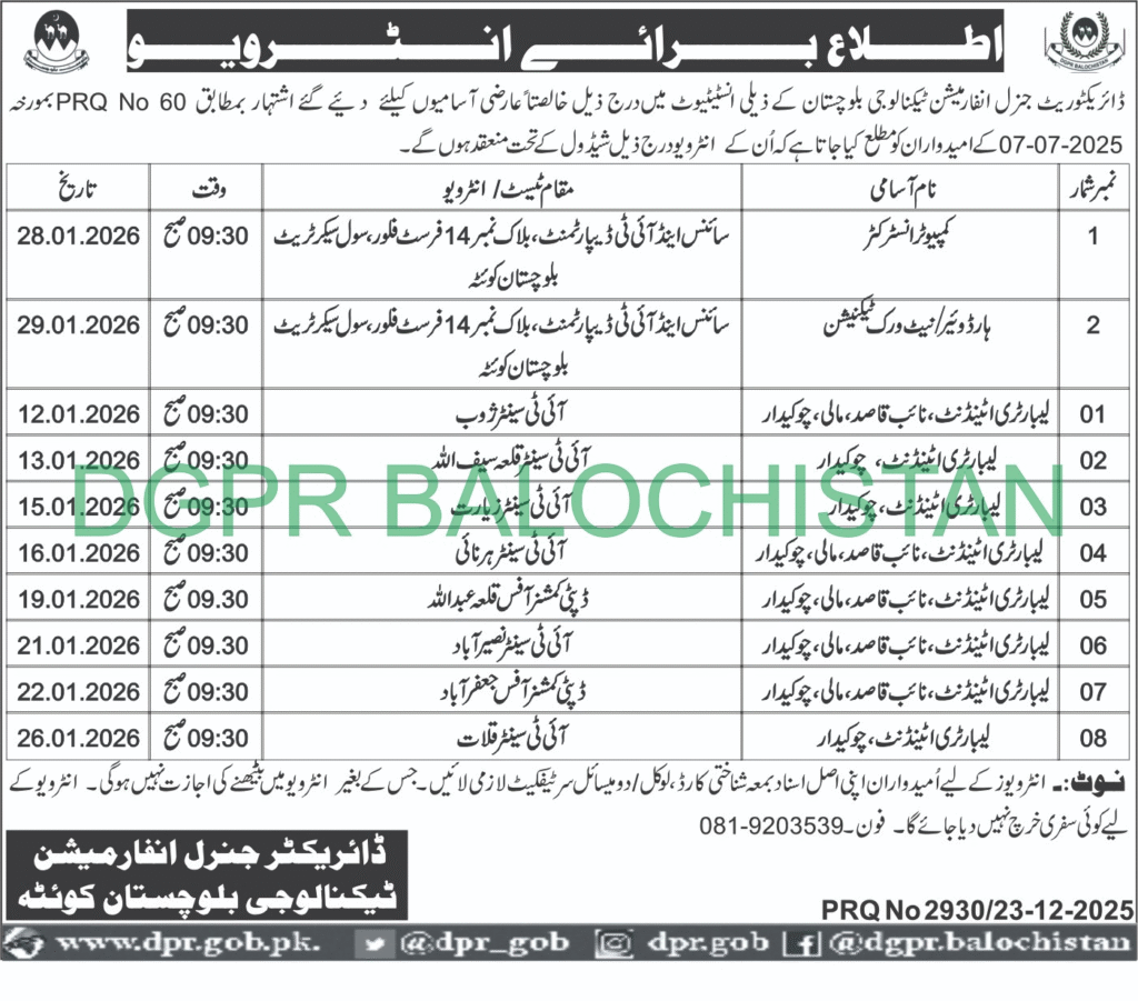 Interview Notification – Directorate General of Information Technology, Balochistan