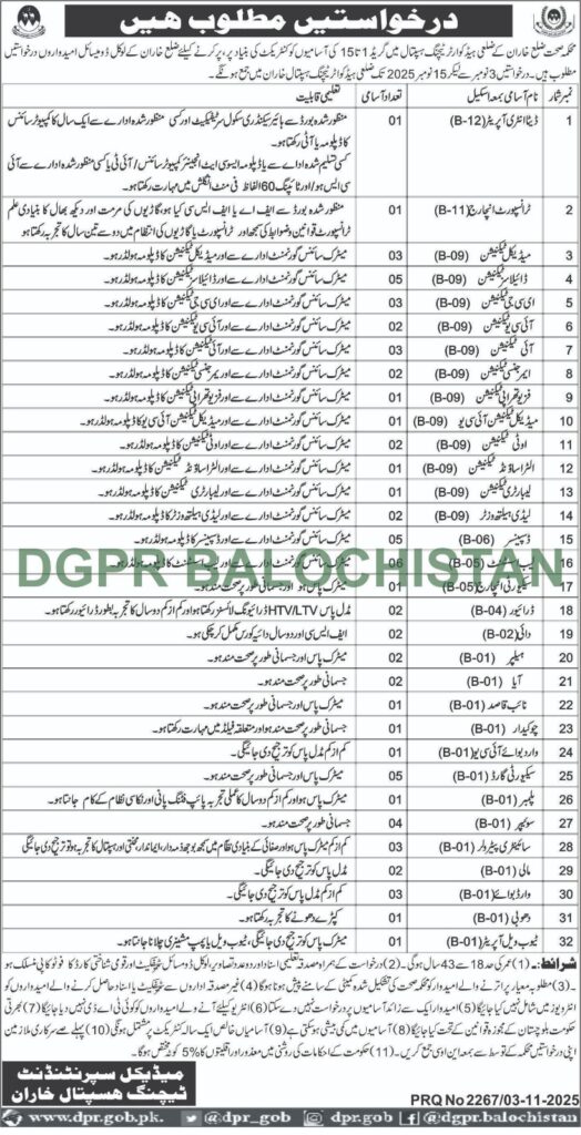 Job Vacancies Announced at Headquarters Teaching Hospital District Kharan (One-Year Temporary Positions)