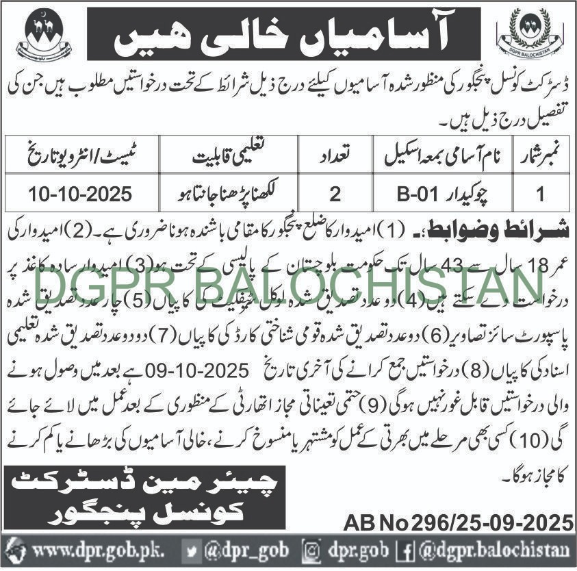 Notice for Test & Interview – Commissioner Sibi Division (Chairman
