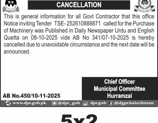 Correction Notice for Vacancies – Health Department District Khuzdar